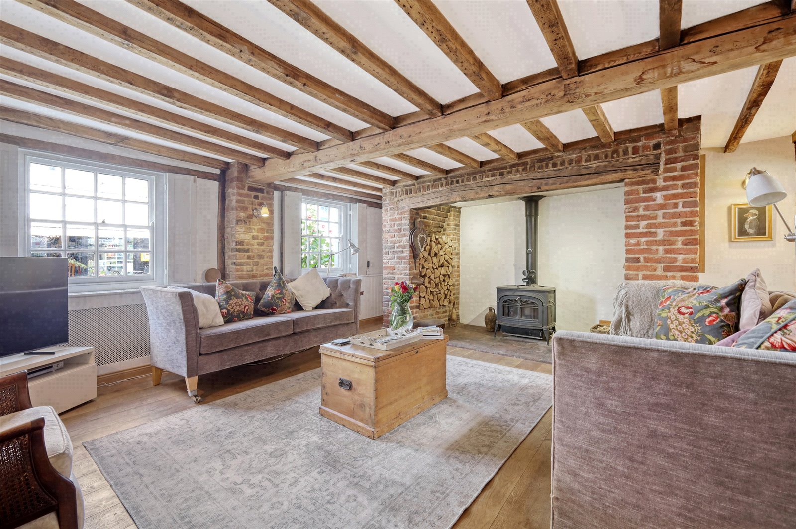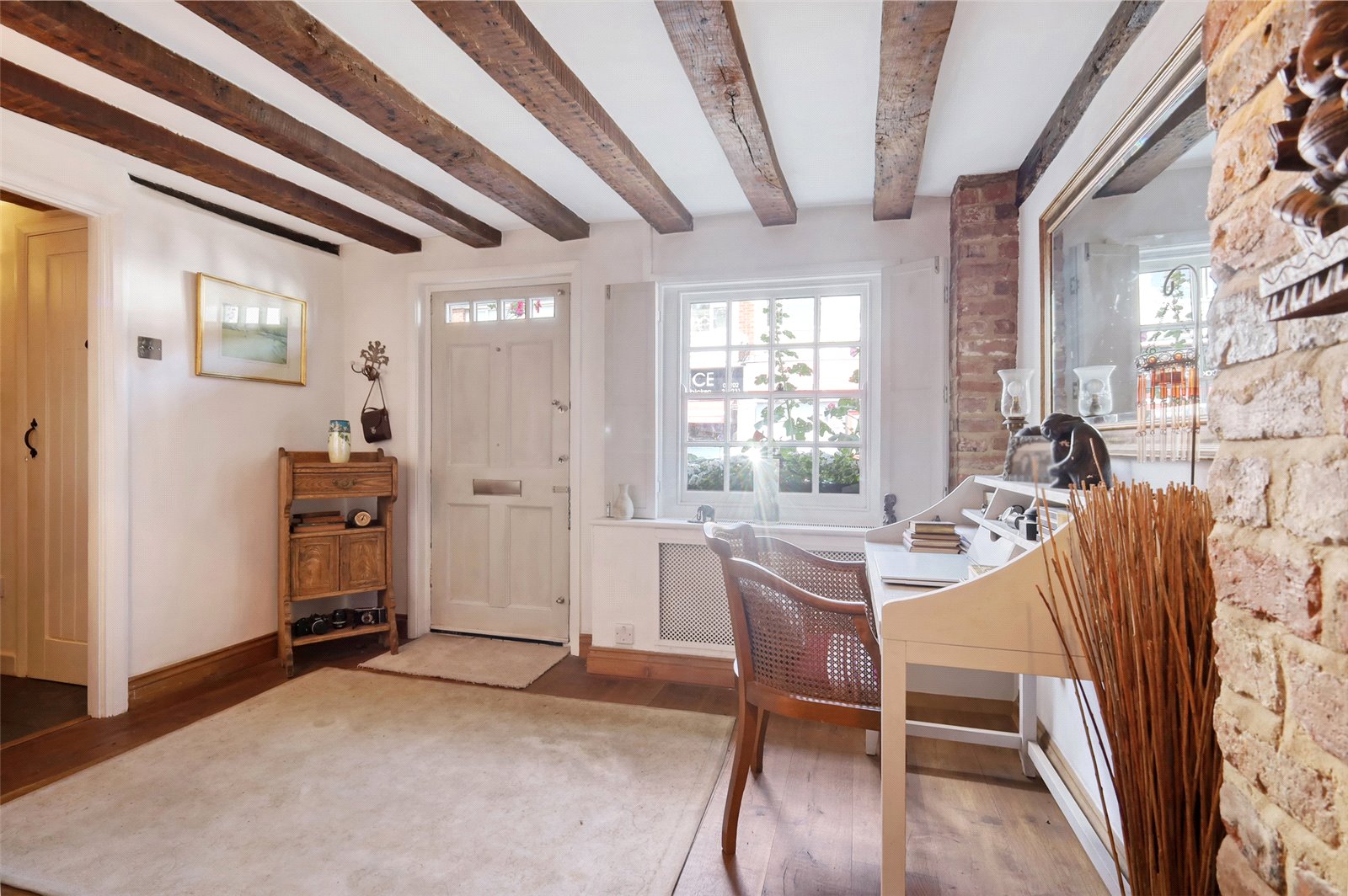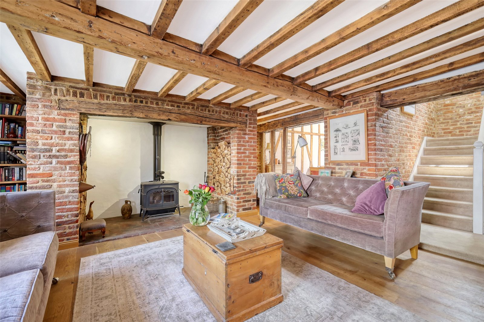 Sash window to front elevation. Radiator in ornamental cabinet. Oak flooring. Exposed original beams & studwork. Two wall lights points. Feature exposed brickwork. Access off to: