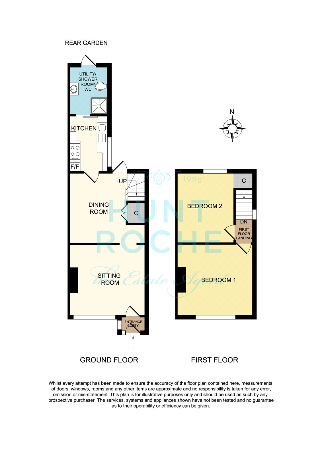 Obscure Upvc double glazed door to rear. Fitted with a three-piece suite comprising frameless glass shower enclosure with rainwater and handheld shower attachments, dual flush close coupled WC, and vanity wash handbasin with gloss fronted cabinet. Victoriana heated towel rail. Metro tiling to half height with feature border tiles. Victorian tray tiled floor. Space, plumbing and drainage for automatic washing machine, and further appliance space. Wall-mounted fan heater. Smooth plastered ceiling with recessed LED lighting.