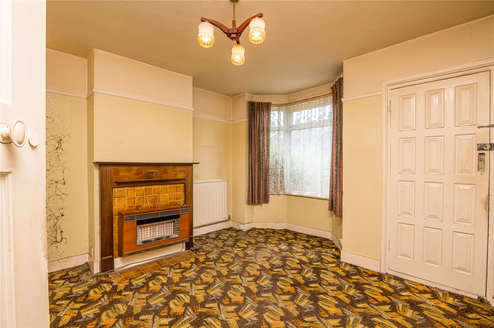 Bay front room with double glazed window to front. Timber fire surround with tiled insert and gas fire ( untested ). Two radiator. High level skirting. Picture rail. Smooth plastered ceiling. Door through to: