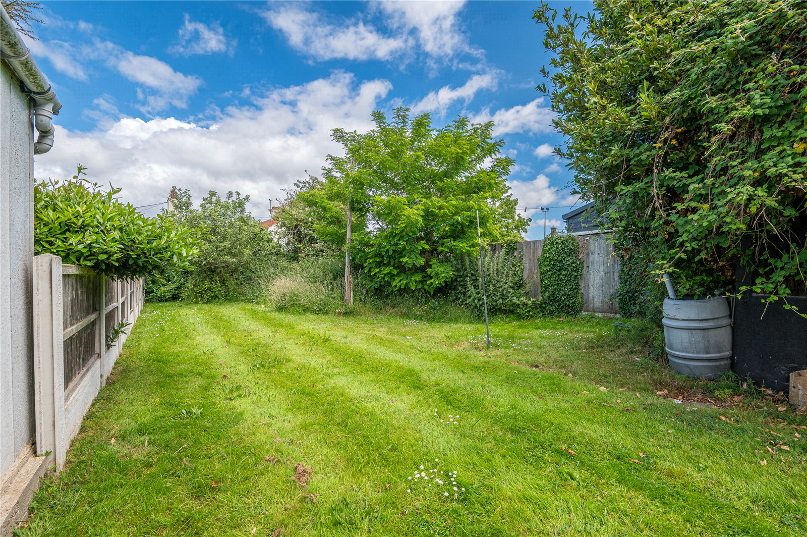 Mainly laid to lawn with mature shrub borders.