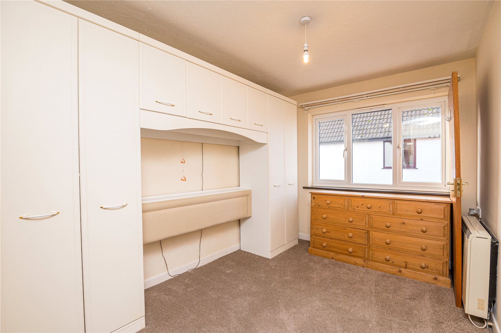 Upvc double glazed window to side. Wall-mounted electric convection heater. Range of fitted bedroom furniture comprising two double full height wardrobe cupboards with overhead cabinets creating double bed recess. Access to airing cupboard housing foam lagged copper cylinder and immersion control, with large storage space.