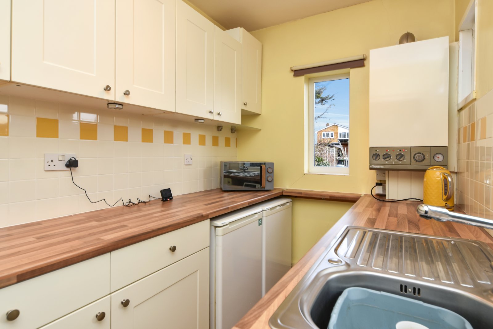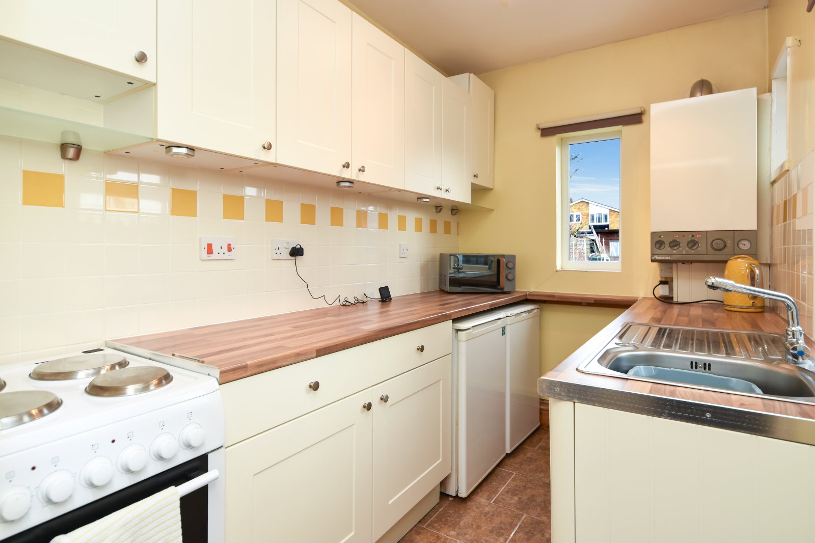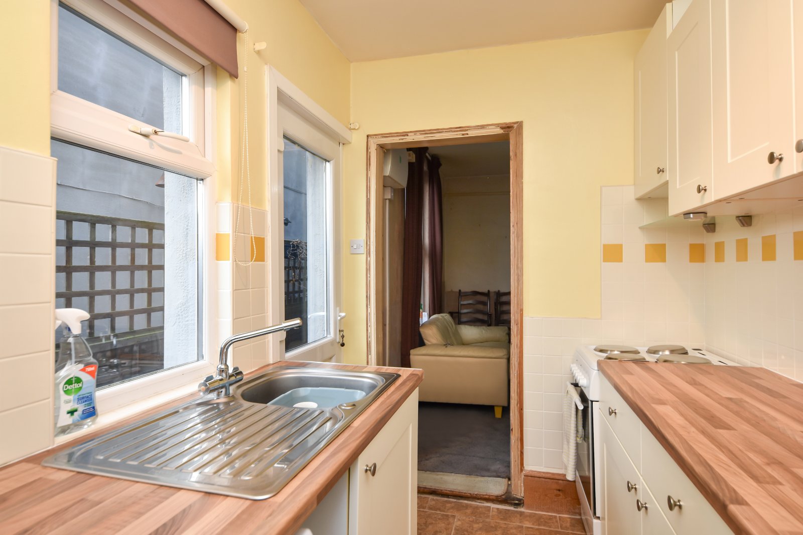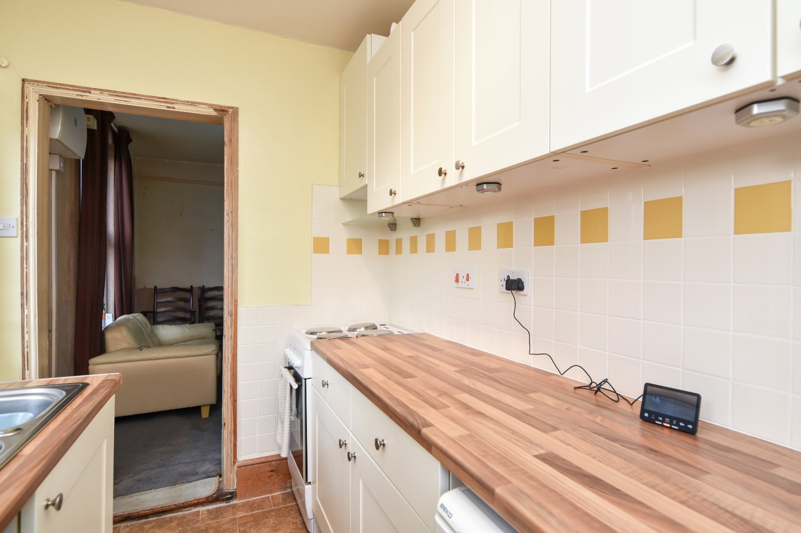 Pair of uPVC double-glazed windows to side aspect, with additional to rear overlooking the Garden. uPVC double-glazed door providing direct access to the rear garden. The Kitchen is fitted with a range of eye- and base-level units finished with rolled-edge wood-effect work surfaces incorporating a stainless-steel single drainer sink unit with mixer tap. Splashback tiling and under-cabinet lighting. Appliances to remain include Undercounter 'Hoover' washing machine, freestanding cooker with four-ring electric hob, together with under-counter 'Beko' fridge and 'Beko' freezer. Wall-mounted 'Worcester' gas boiler. Tiled flooring. Smooth plastered ceiling.