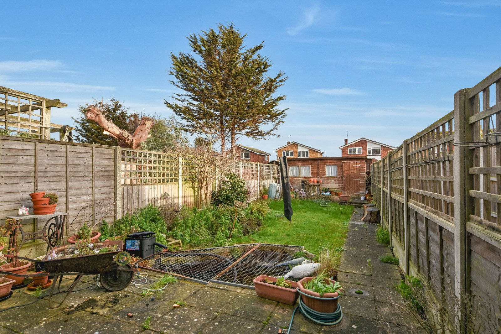 The rear garden is accessed directly from the Kitchen and benefits from gated side access, providing convenient external entry. The garden begins with a good-sized patio seating area, beyond which lies a sunken fish pond forming a feature boundary to the remainder of the garden. The main garden area is predominantly laid to lawn, with a footpath running along one aspect and established shrub borders. Enclosed by timber panel fencing, the garden offers a pleasant degree of privacy. To the rear is a timber-framed shed providing useful storage, and there is also an outside water tap.
