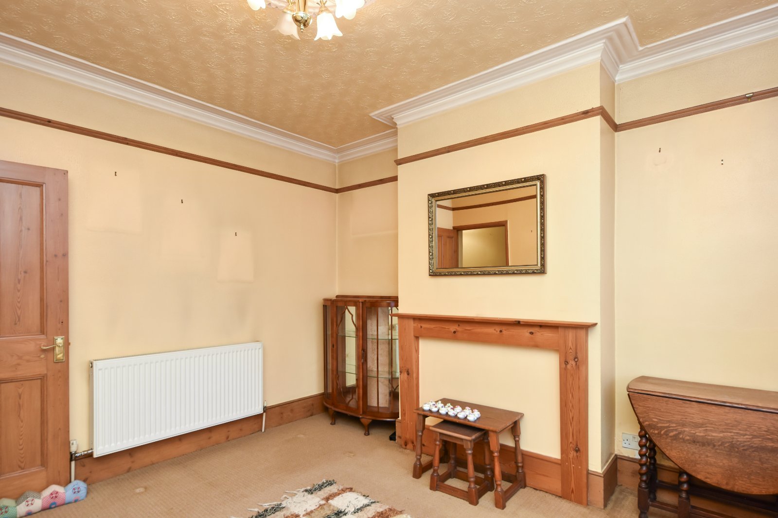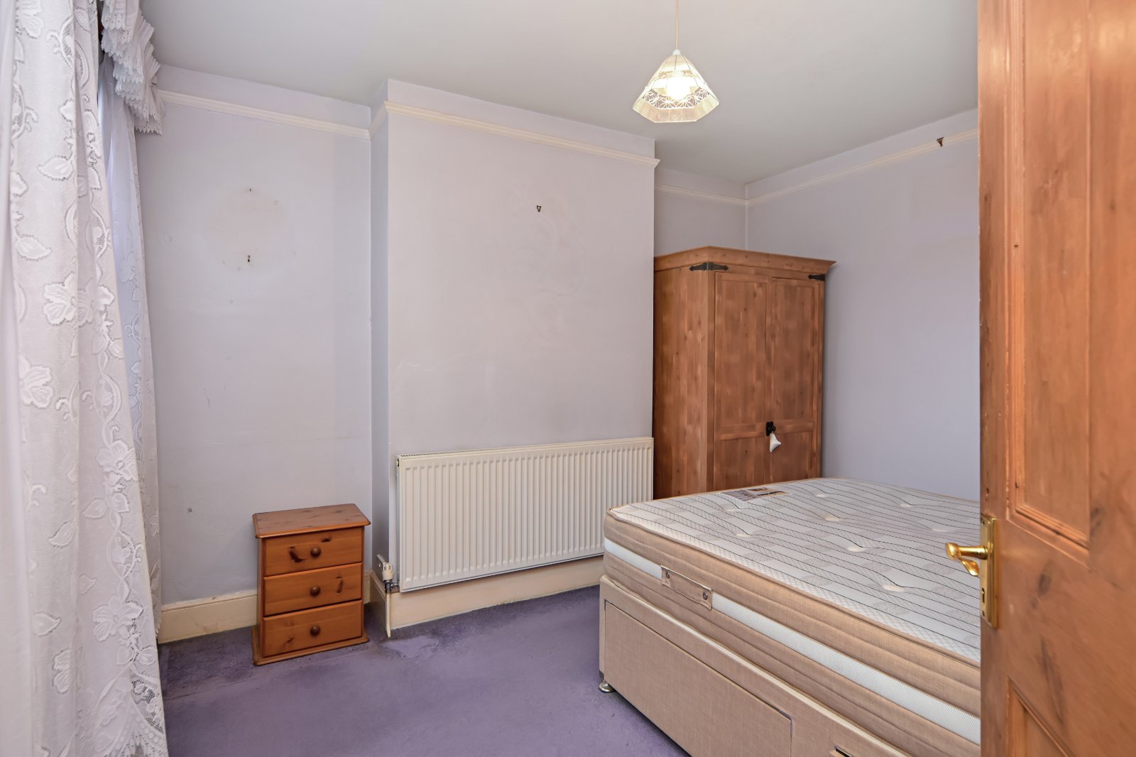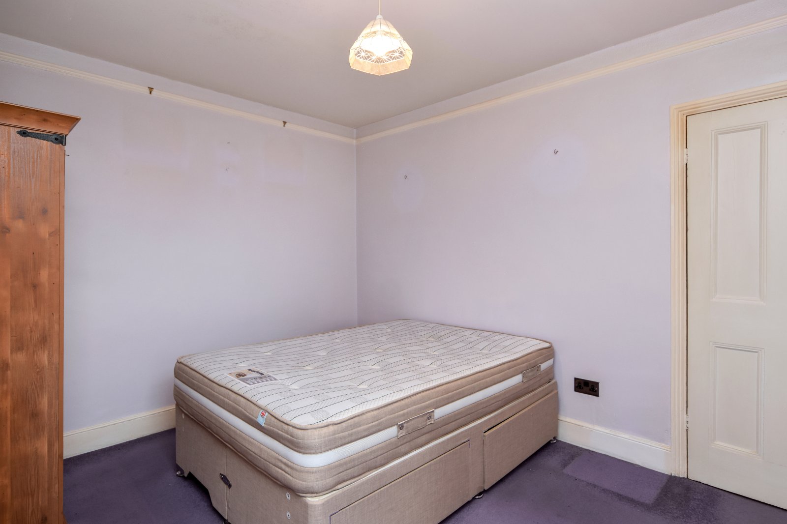 uPVC double-glazed bay window to the front aspect. Radiator. Retained period detailing including decorative cornicing and a central ceiling rose set within a smooth plastered ceiling. Wooden fireplace surround. Picture rail. Radiator. Given its generous proportions and prominent position, this room, whilst currently arranged as a living space, offers excellent potential to be utilised as the principal bedroom if a two-bedroom configuration is preferred. The bay window provides excellent natural light, enhancing both its flexibility and appeal.