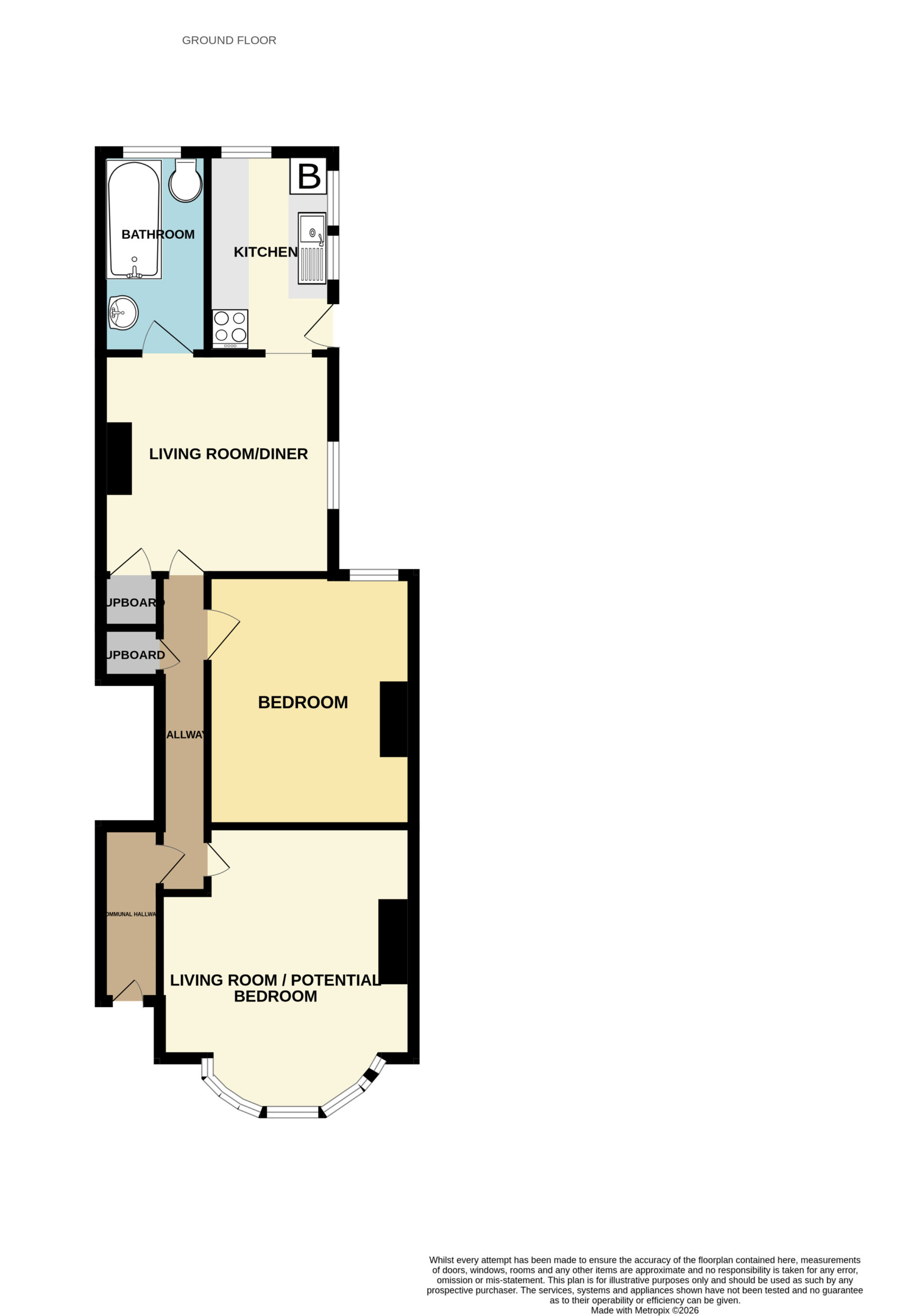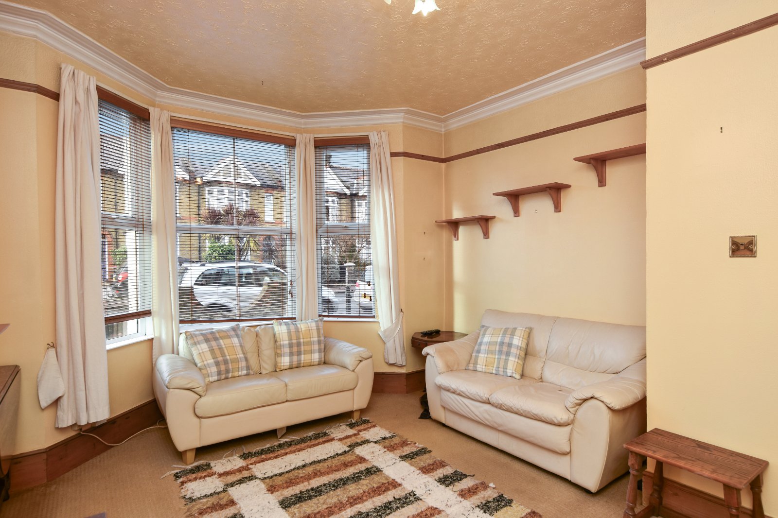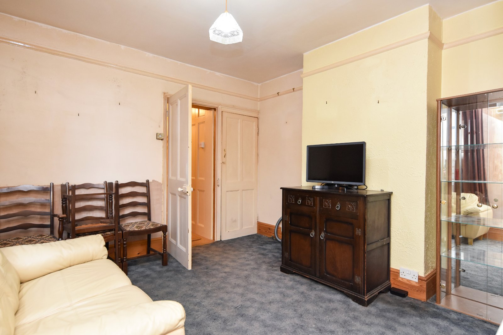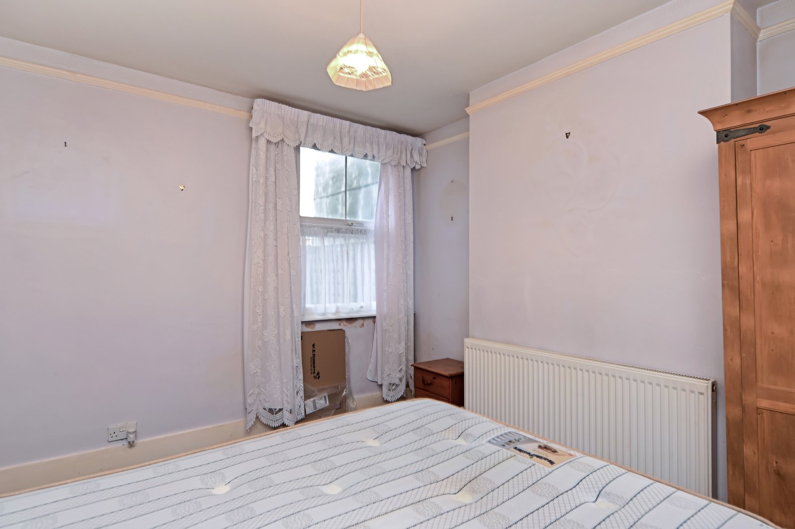 uPVC double-glazed bay window to the front aspect. Radiator. Retained period detailing including decorative cornicing and a central ceiling rose set within a smooth plastered ceiling. Wooden fireplace surround. Picture rail. Radiator. Given its generous proportions and prominent position, this room, whilst currently arranged as a living space, offers excellent potential to be utilised as the principal bedroom if a two-bedroom configuration is preferred. The bay window provides excellent natural light, enhancing both its flexibility and appeal.