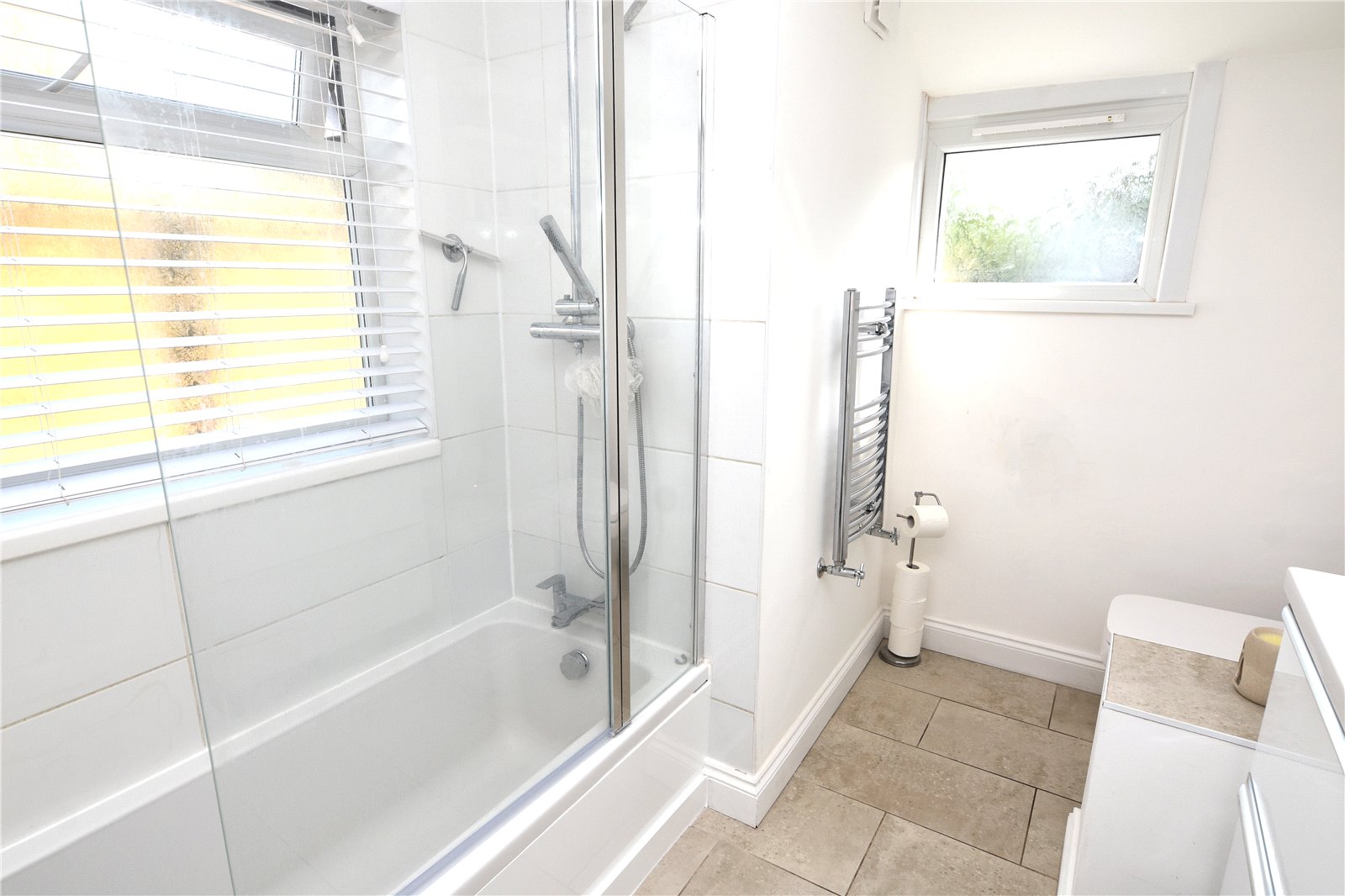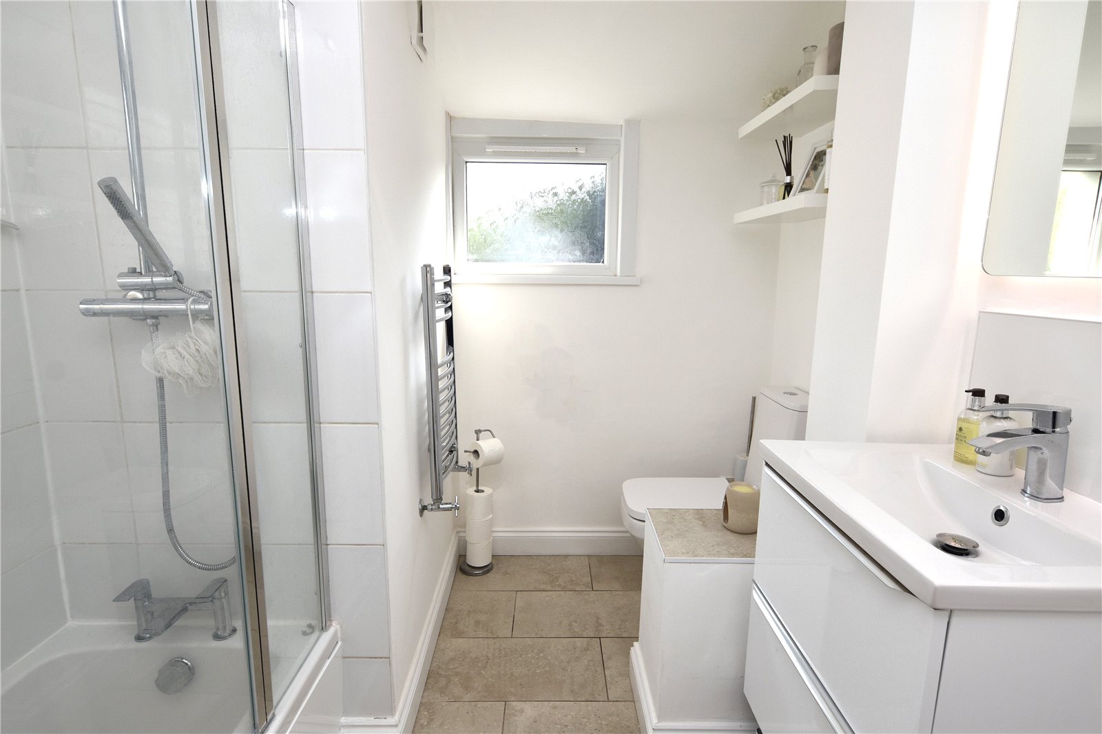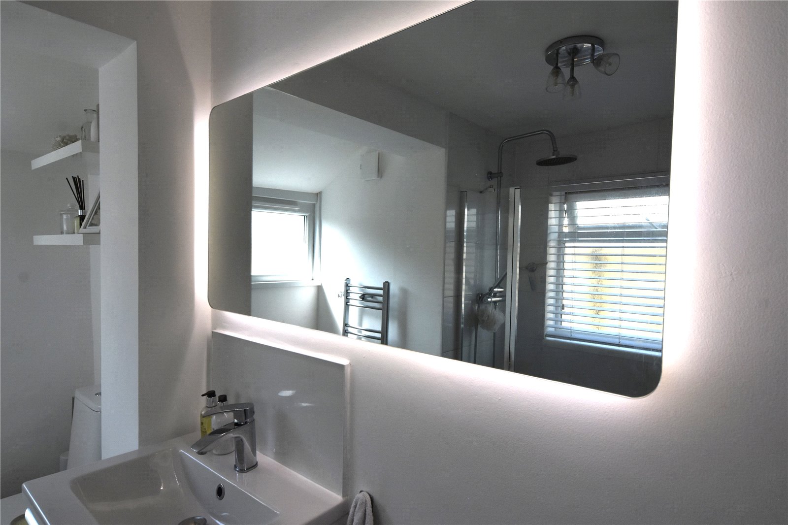 uPVC obscure double glazed window to rear and side aspects. Recently refitted white three piece suite comprising a panelled enclosed bath with integrated shower over dual flush WC and wash hand basin inset to vanity unit with mixer tap over and storage drawers under. Ceramic splash back tiles. Radiator. Chrome heated towel rail. Tiled flooring throughout. Smooth plastered ceiling,