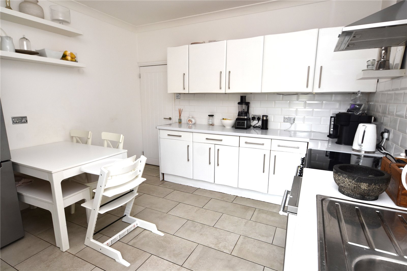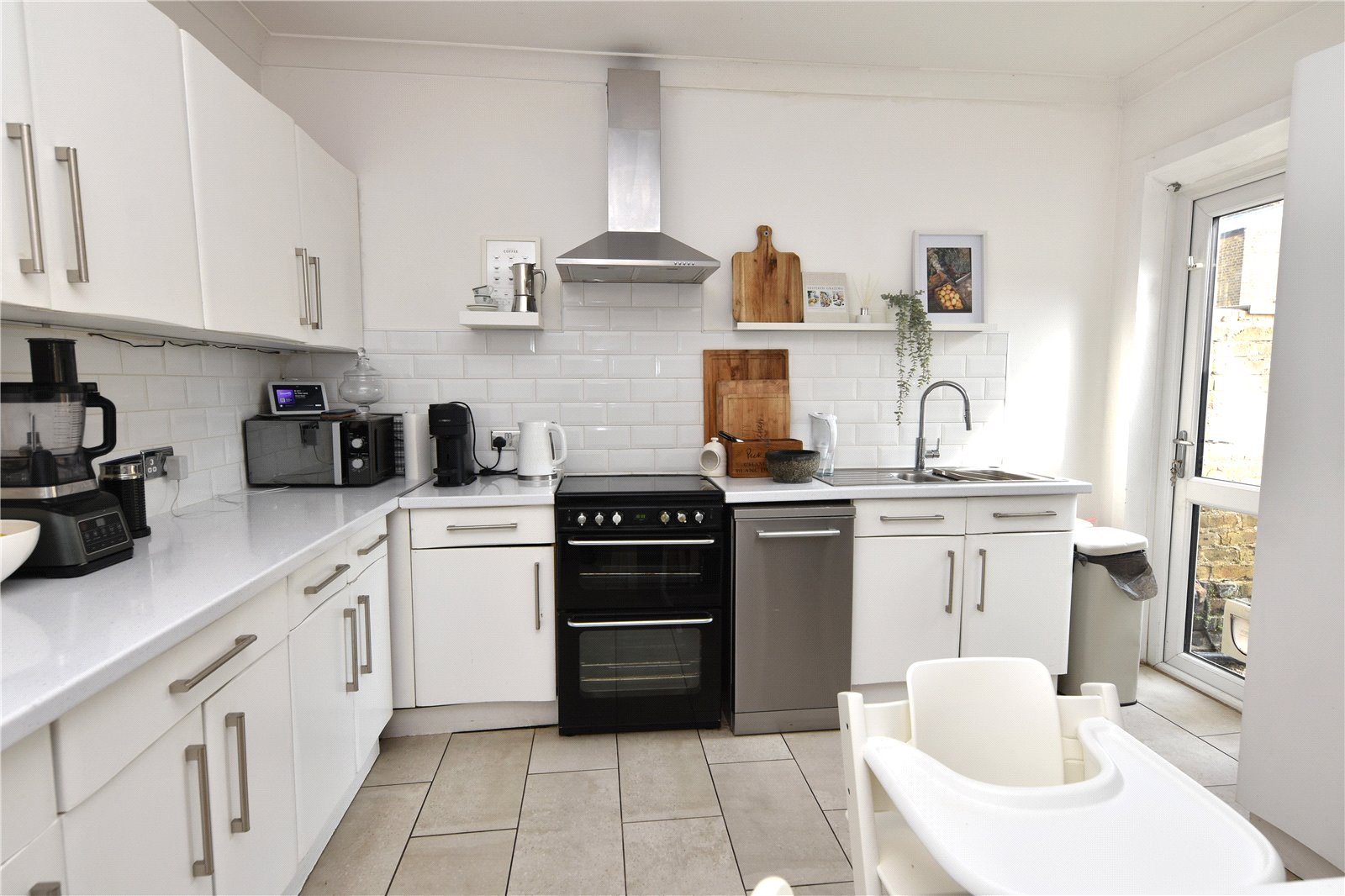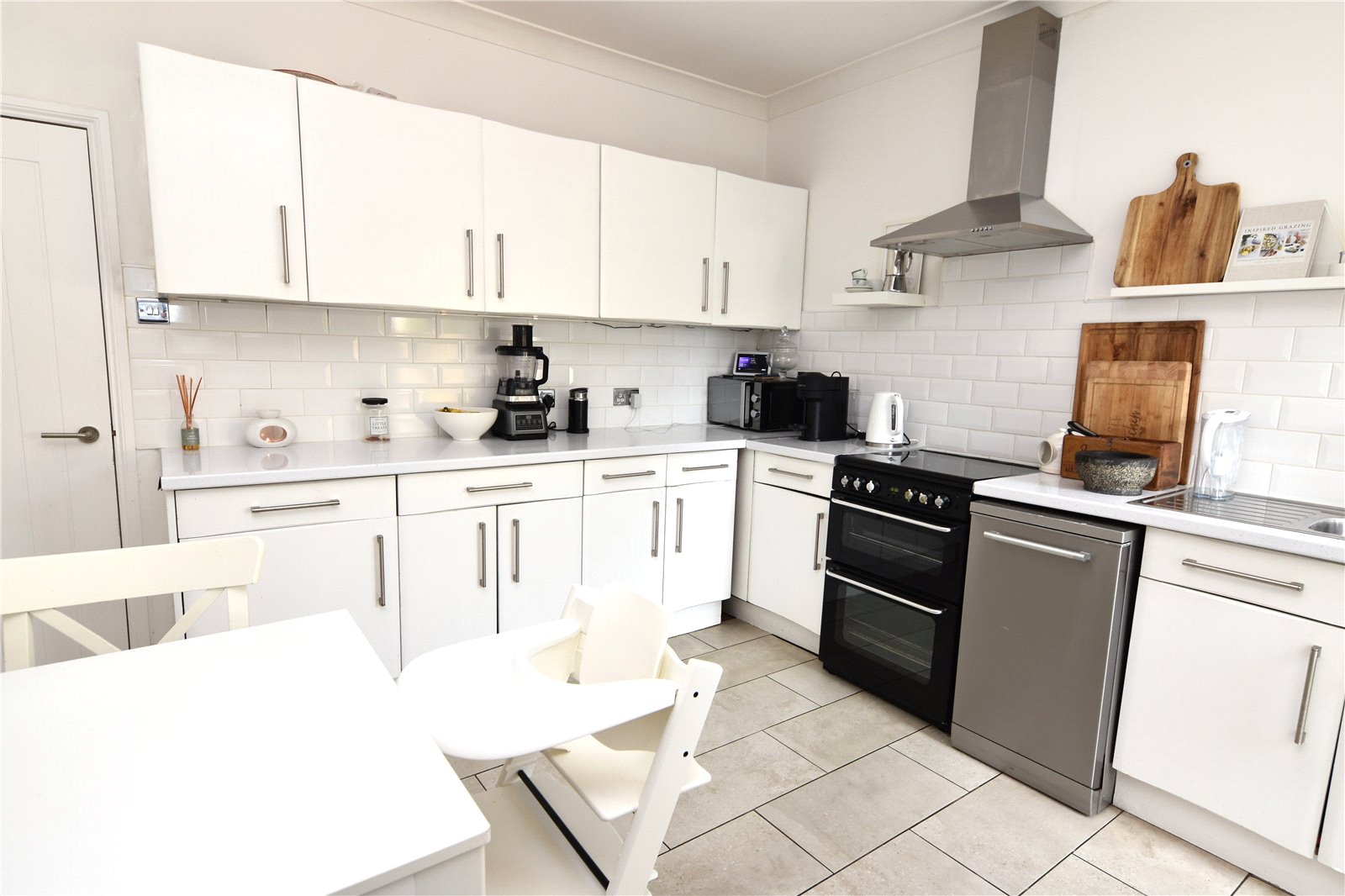 uPVC double glazed door providing access to rear garden. Modern fitted kitchen with a range of eye and base level units with rolled edge working surfaces over inset with stainless steel sink unit with mixer tap over. Space for fridge/freezer. Freestanding four ring gas hob with extractor canopy over. Tiled flooring. Smooth plastered ceiling. Access to;