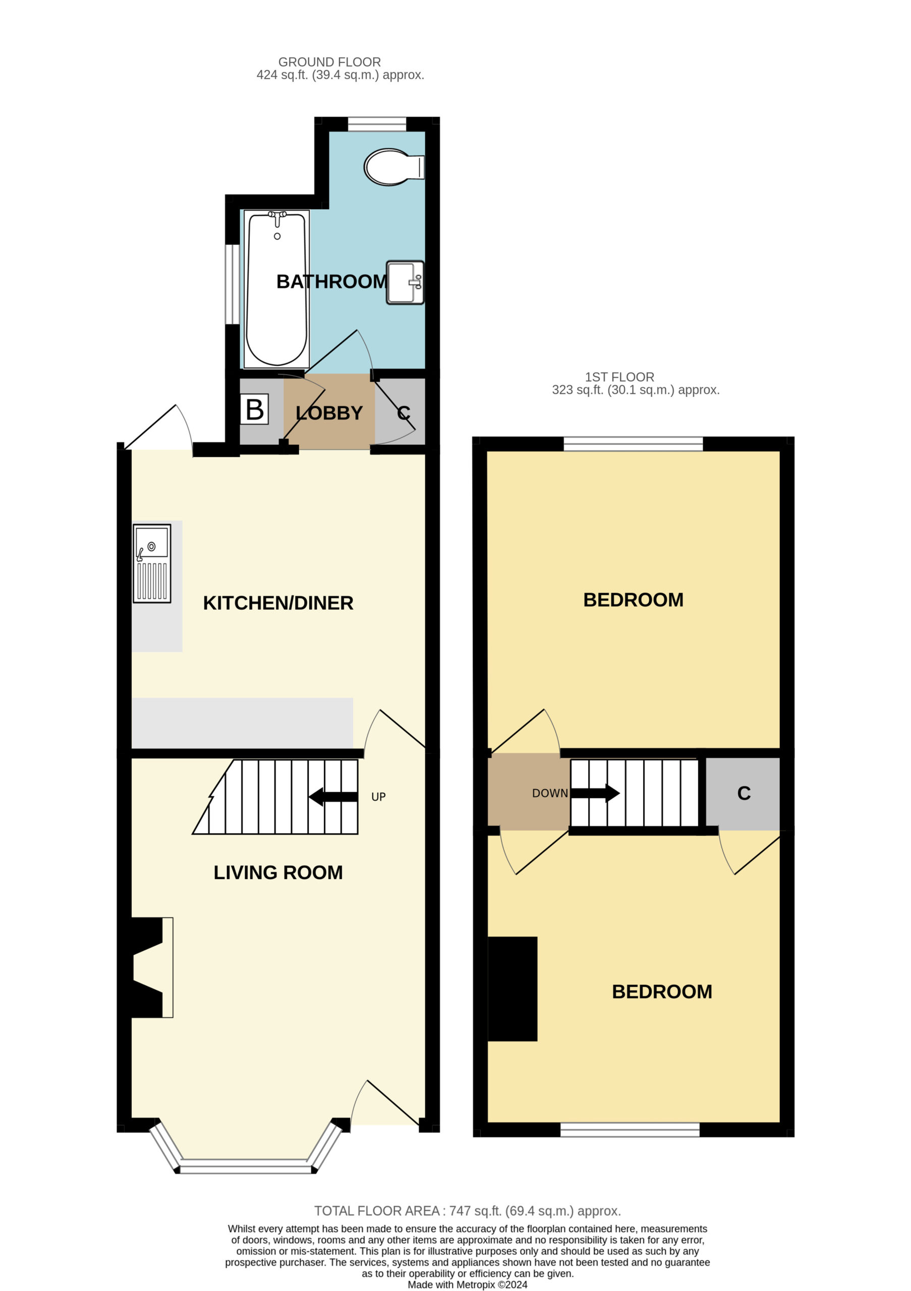 Carpeted staircase. Original panelled doors to both bedrooms.