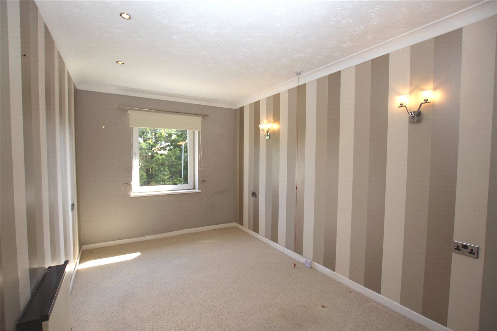 Plus mirror fronted built in wardrobe cupboards. A good size and bright south facing double bedroom with double glazed window to front. Storage heater. Coved ceiling with recessed lighting. Two wall light points.
