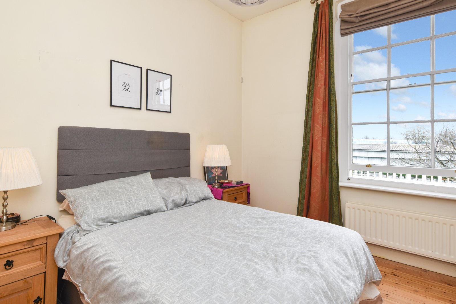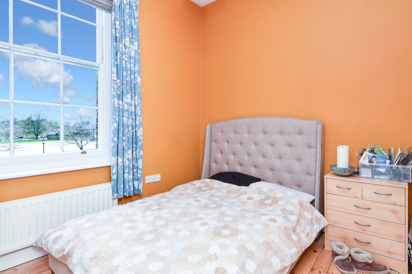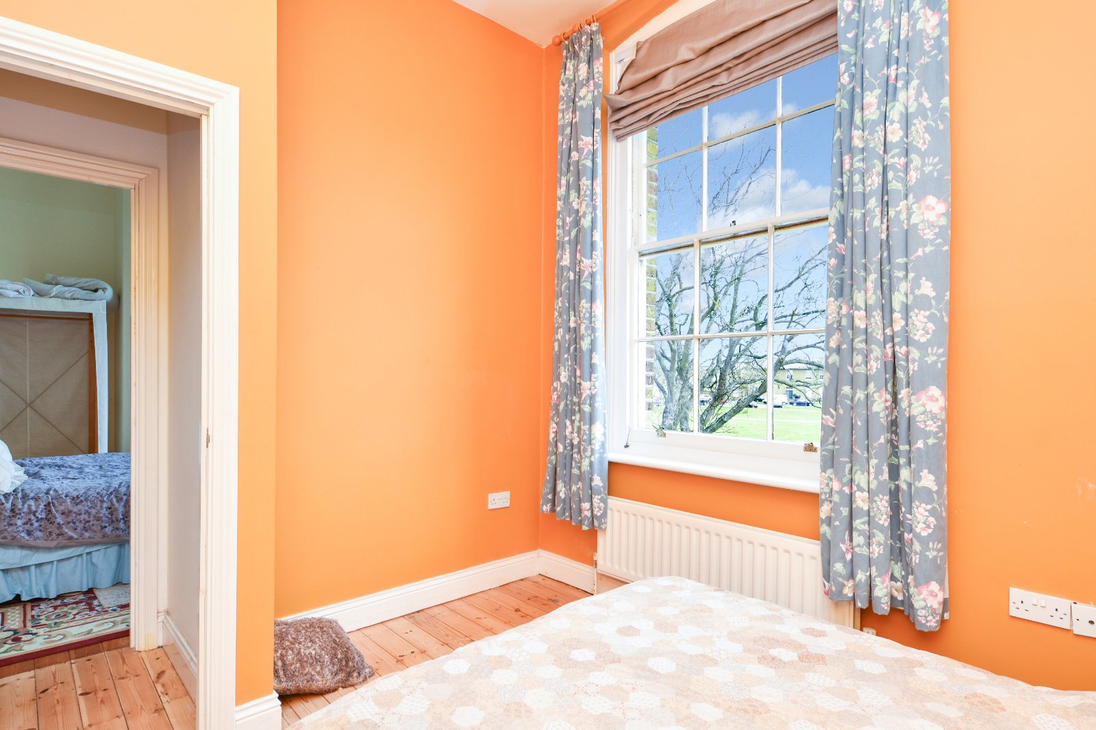 Impressive portrait sash cord Georgian style window to front aspect boasting open aspect views across the Horseshoe Parade ground. Stripped wood flooring. Radiator. Smooth plastered ceiling.