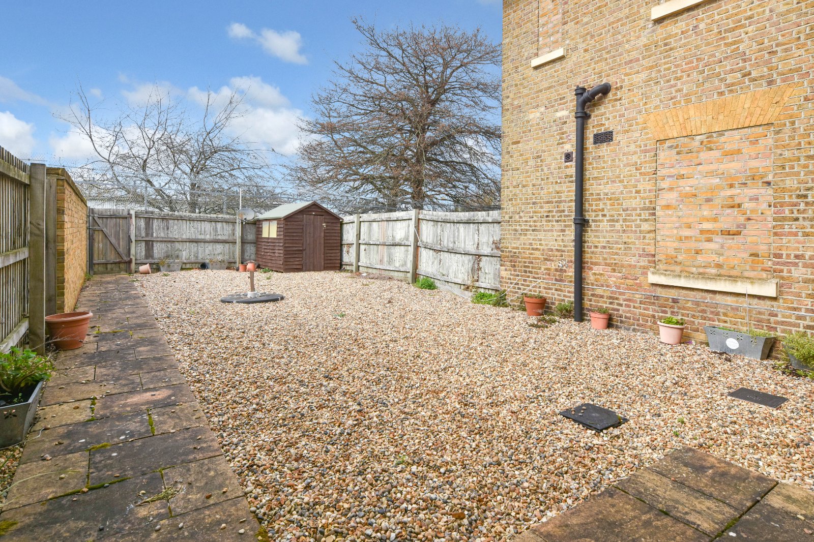 The Courtyard style rear garden is approached via the Living area with patio seating area extending to a pathway leading tot he rear of the garden and personal gated rear access. Fencing to boundaries. Timber framed shed.