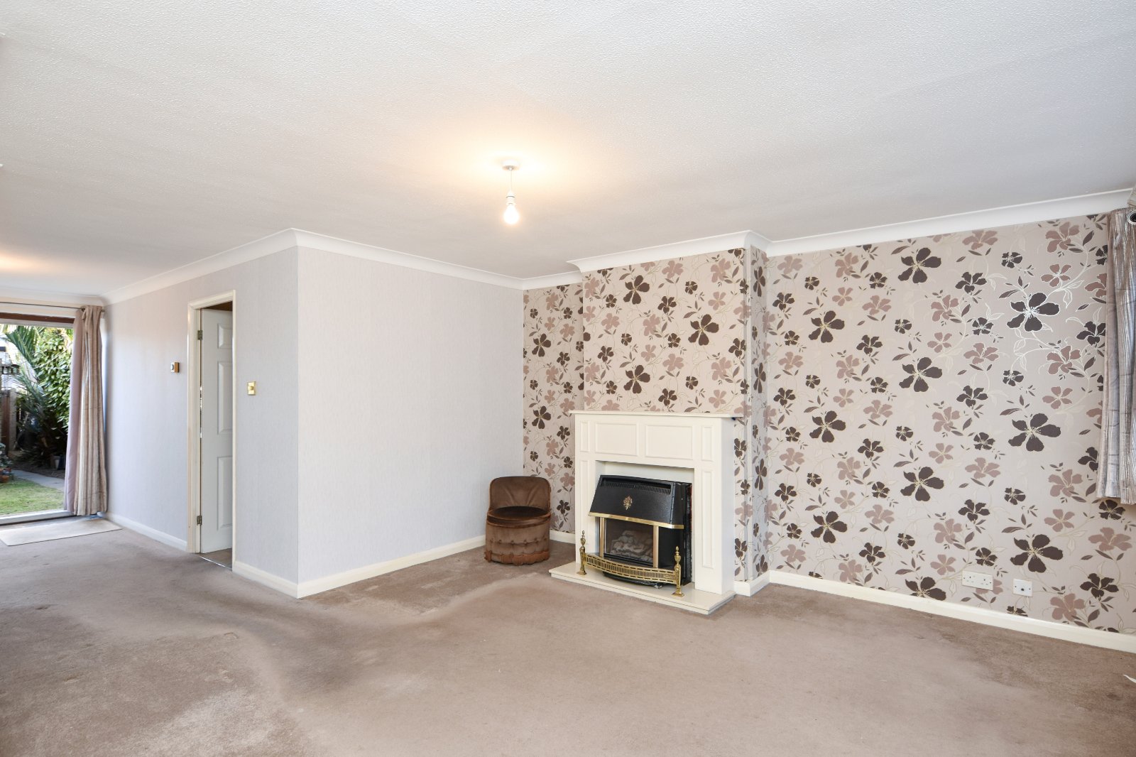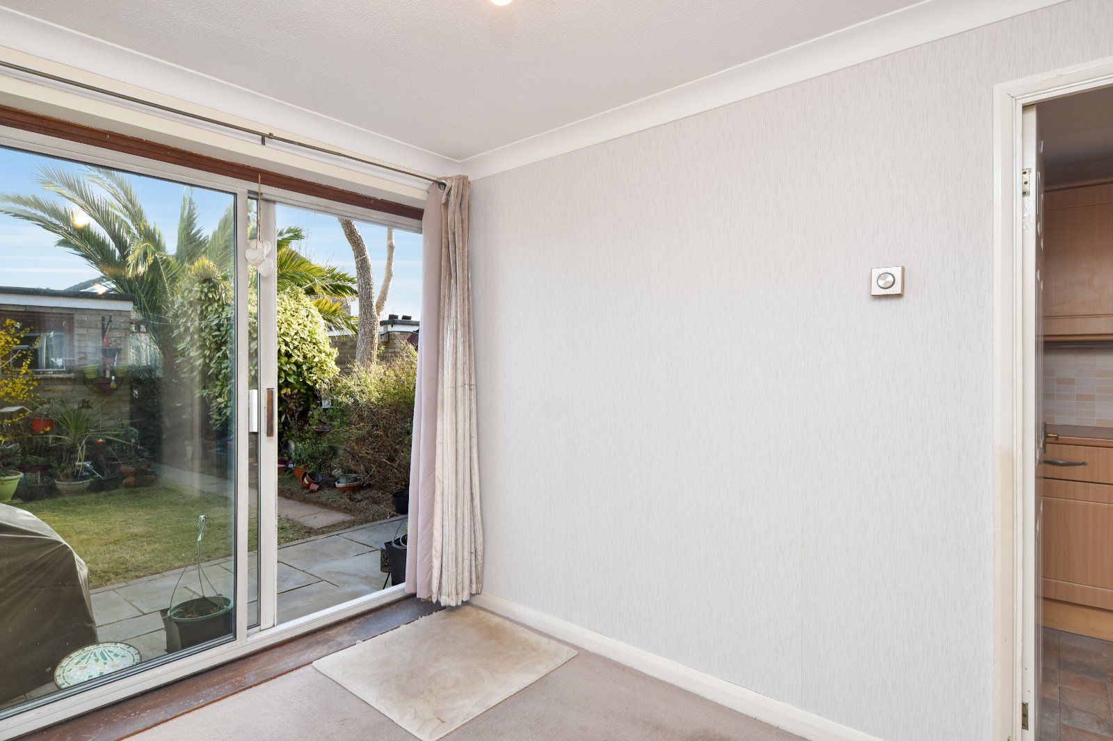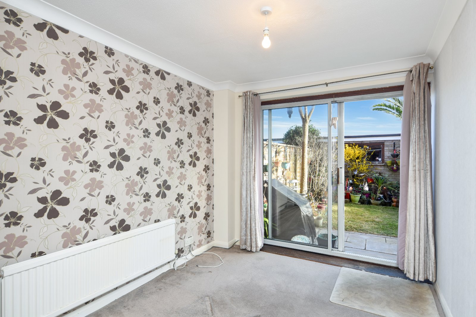A spacious dual aspect Living space, featuring a double glazed window to the front and sliding doors opening onto the rear garden with further access through to the Kitchen.