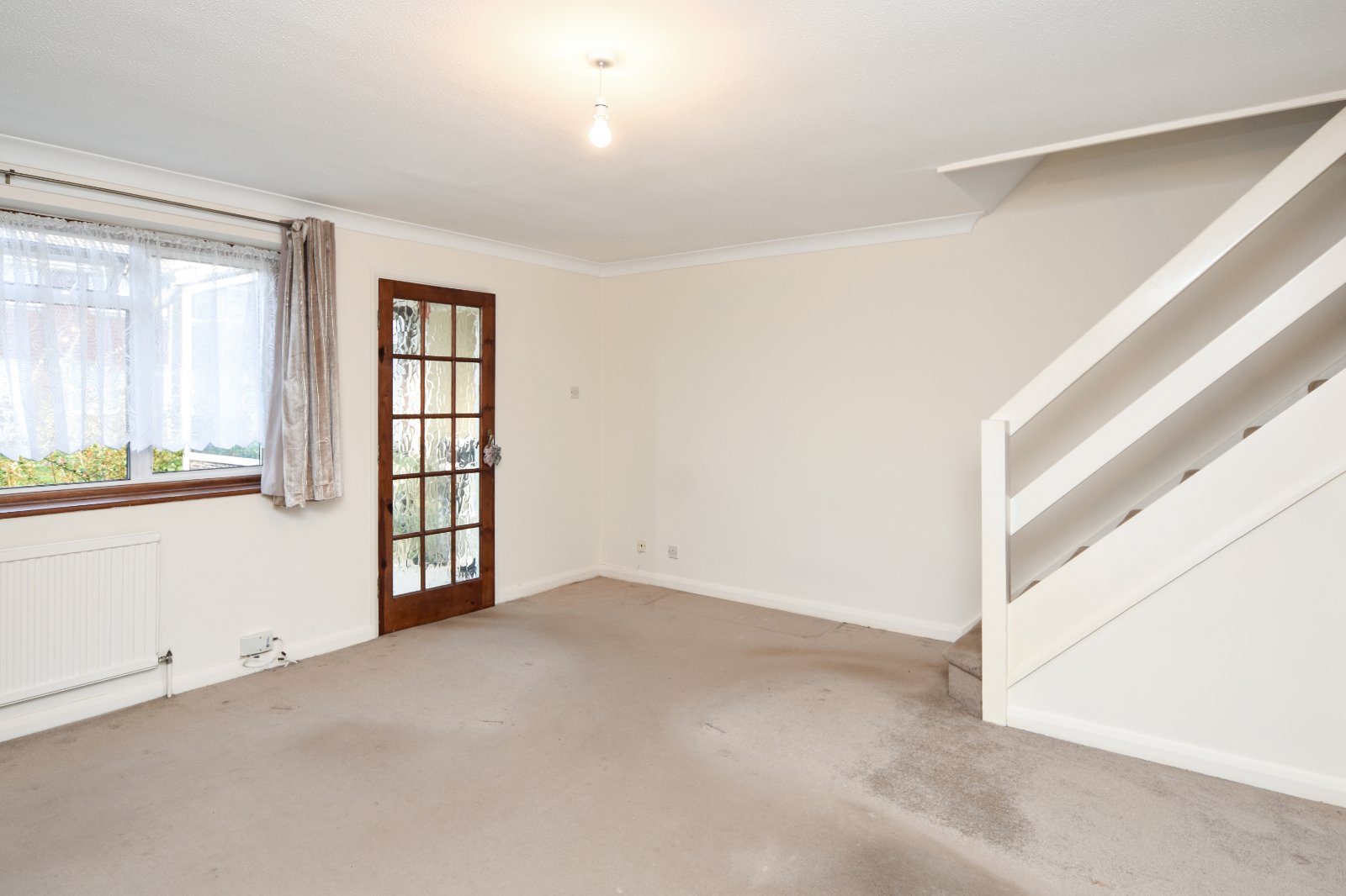 Double glazed sliding doors opening to the rear Garden. Door to understairs storage cupboard. Radiator. Coving to textured ceiling. Panelled door to;