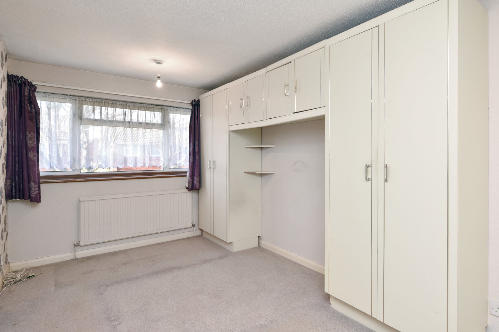 Double glazed window to front aspect. The room is fitted with a range of built-in wardrobes, including a pair of double wardrobes with overhead storage bridging the bed recess. Further twin doors open to a recessed wardrobe/storage cupboard. Radiator. Textured ceiling.