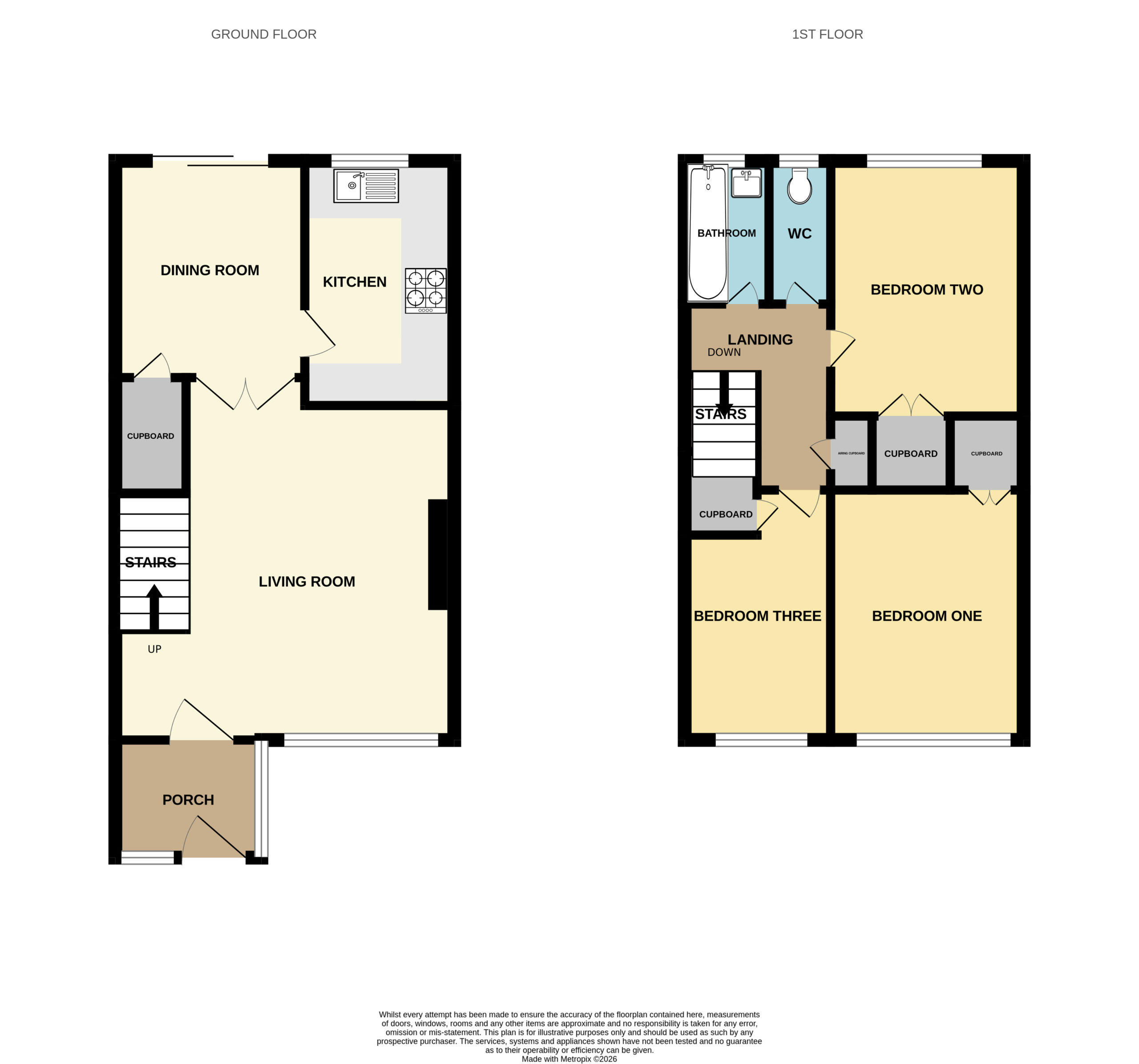 Panelled doors to all rooms. Door to airing cupboard with linen shelving. Textured ceiling with access to loft space.