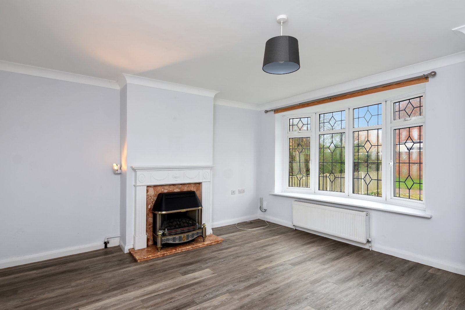 The property is approached via a walkway position, with a pathway leading to the front entrance. To the front there is a lawned garden with established shrubs and planting, creating a pleasant outlook.