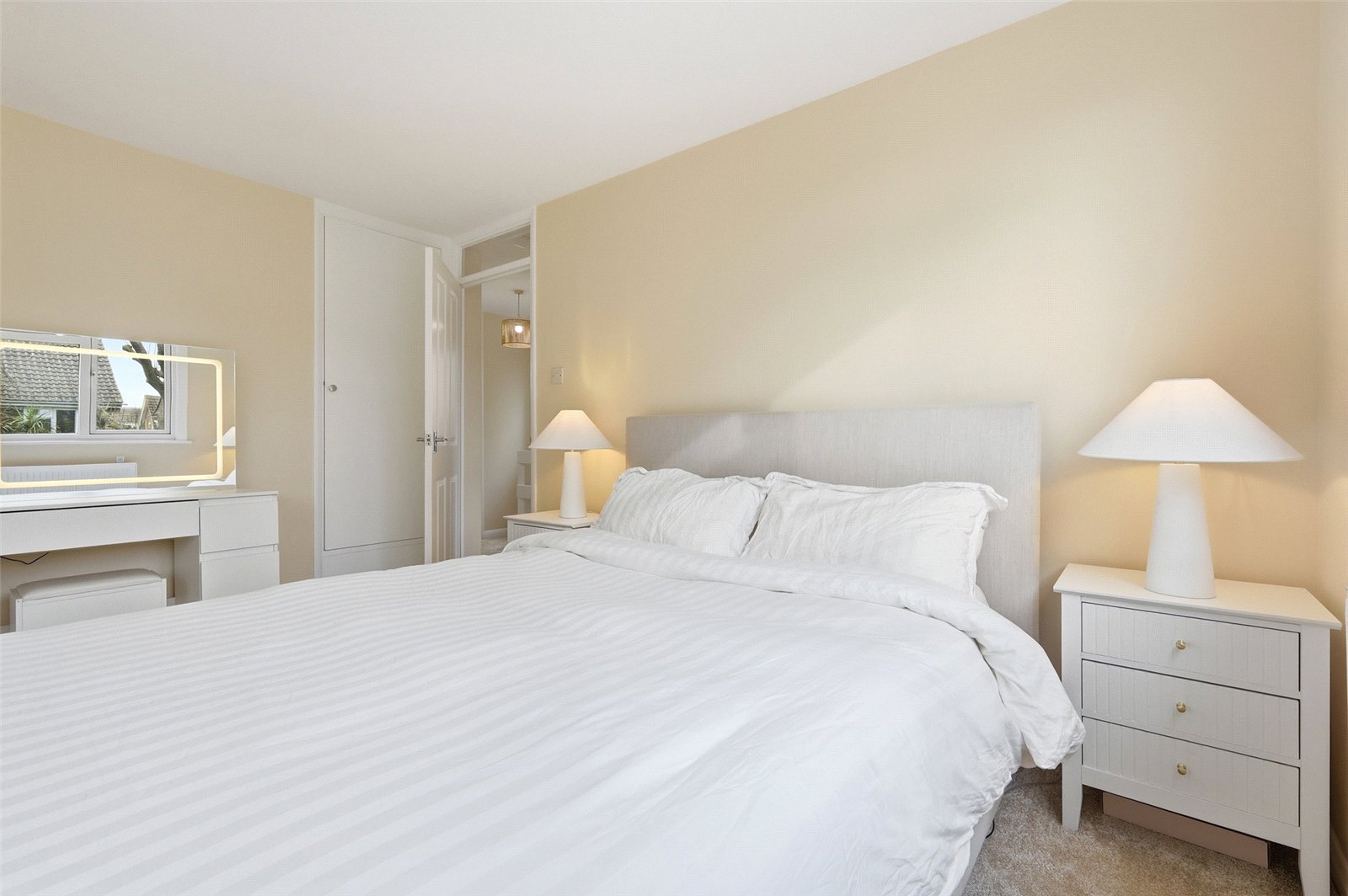 plus range of fitted wardrobe units. UPVC double glazed window to front. Wall mounted radiator. Fitted storage cupboard to side. Extensive range of fitted wardrobe units with sliding doors.