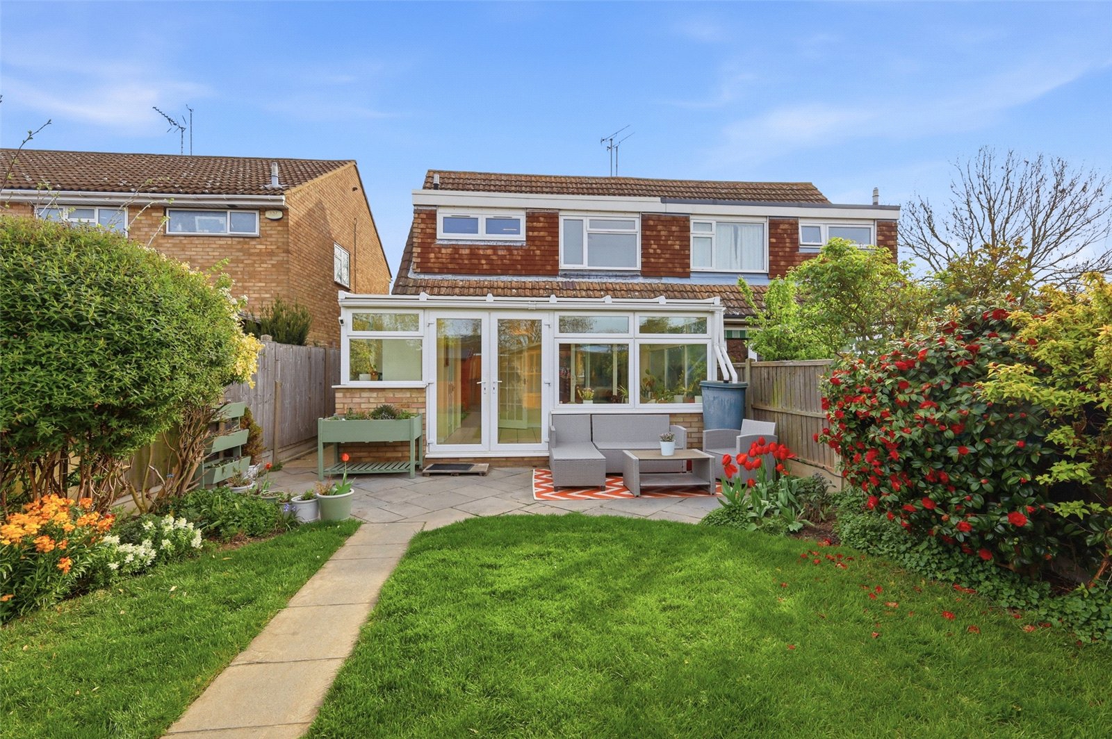 The property benefits from a good size front garden which is mostly laid to lawn with maturing tree.