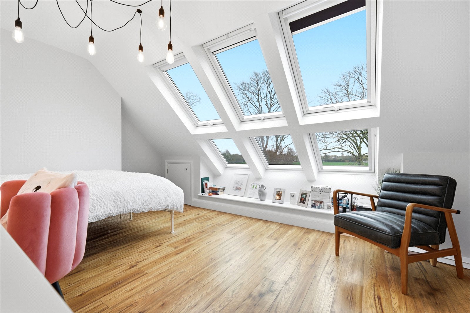 Six double glazed Velux roof windows to front affording glorious views over Southchurch park playing fields and pond. Wall mounted radiator. Access to eve storage space. Woof effect laminate flooring. High level skirting. Smooth plastered ceiling.