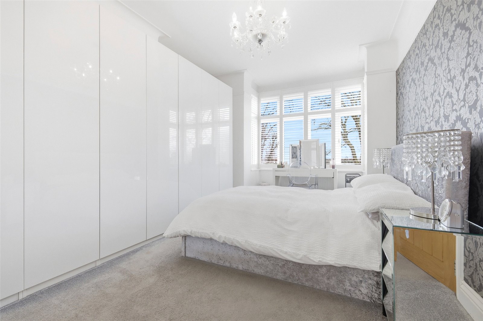 into bay. Large UPVC double glazed bay window to front overlooking playing fields and duck pond with fitted plantation shutter. Wall mounted radiator. Extensive range of high gloss fitted wardrobe units. High level skirting. Feature picture rail .Coved cornice to smooth plastered ceiling with decorative ceiling rose.