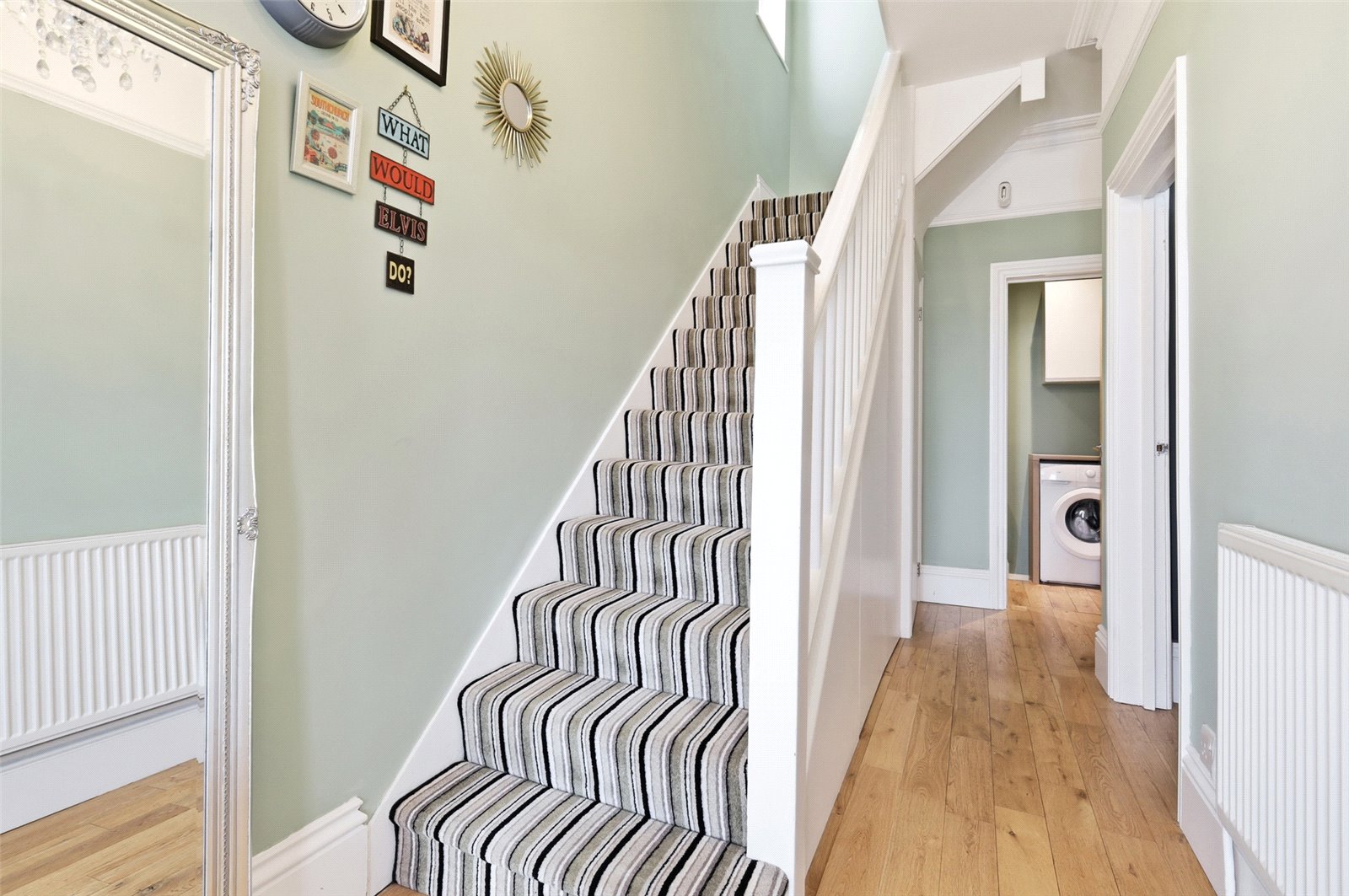 Approached via composite front door with inset obscured glazed panels. Full height obscured glazed windows adjacent. Doors lead off to ground floor rooms. Stairs rising to first floor accommodation. Engineered Oak flooring. high level skirting. Wall mounted radiator. Range of fitted understairs storage cabinets. Feature picture rail. Coved cornice to smooth plastered ceiling with decorative ceiling rose.