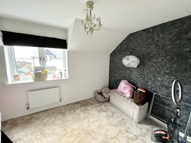 UPVC double glazed multi pane window to front. Radiator. Lipped skirting. Feature part vaulted smooth plastered ceiling.