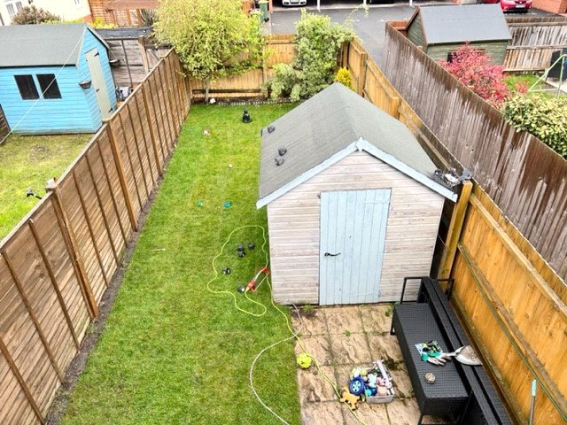 The rear garden commences from the sitting/dining room with a full width split level stone patio terrace that extends to a hardstanding for a timber garden shed. Ample space for dining al fresco. Secure timber gated side access to the front and rear of the property, and access to the private parking bays. The garden is fenced to both sides and rear boundary, with a planted rear border. External water supply.