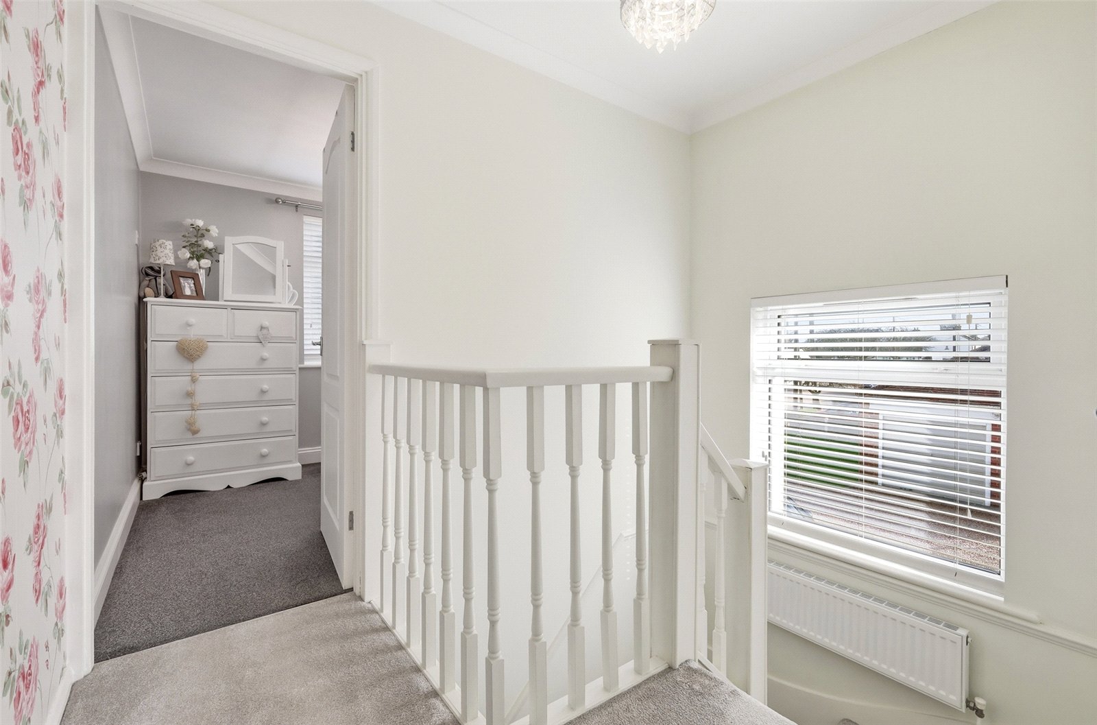uPVC double glazed window to side. Radiator at half landing level. Access to insulated roof space. Access to linen storage cupboard with slatted linen shelving. Doors lead off to first floor rooms.