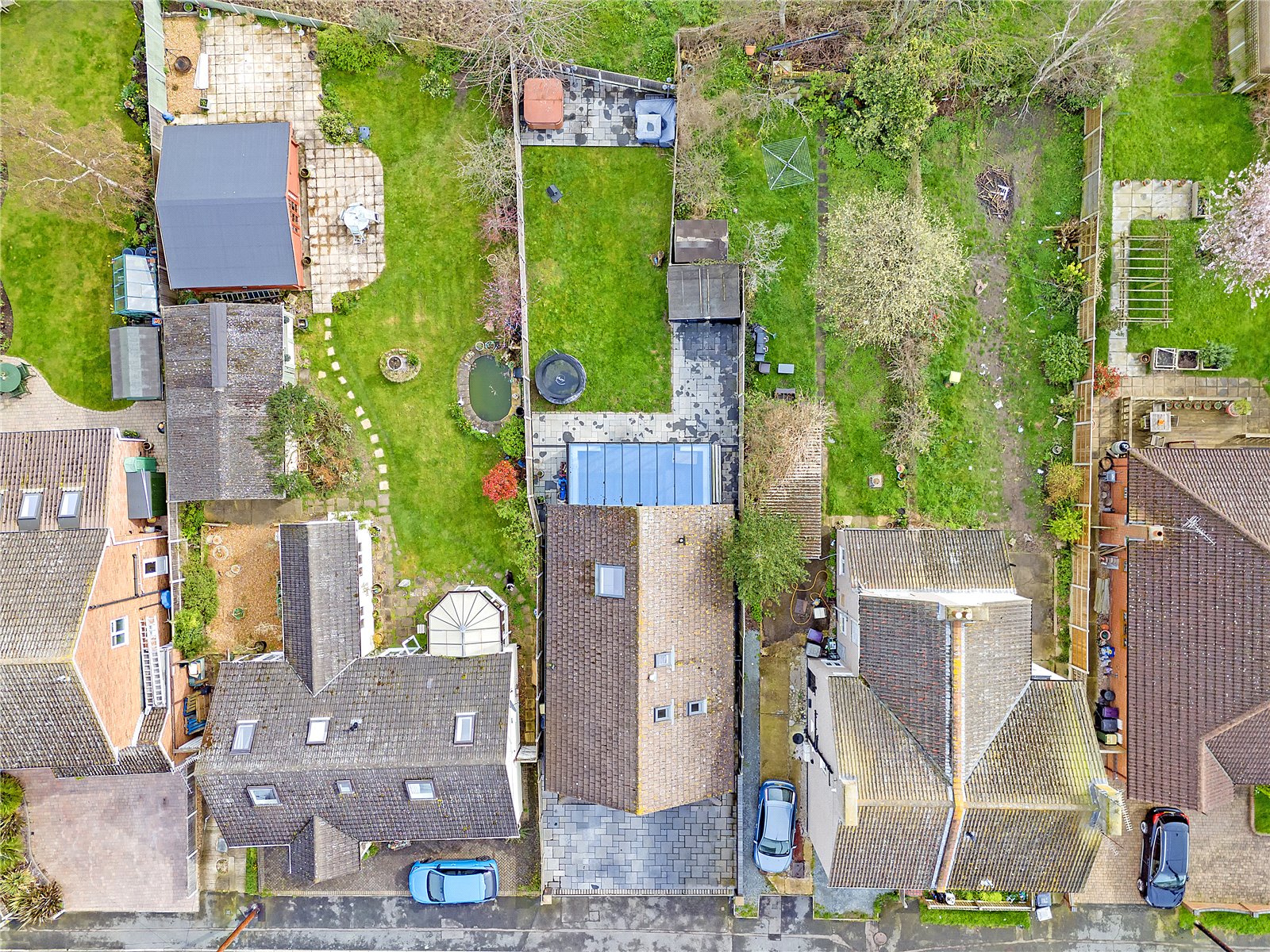The rear garden commences from the Family Room with an extensive slate effect patio terrace in bordered surround, ideal for dining 'al fresco', that extends to the side of the property. The remainder of the garden is attractively laid to lawn with further slate paved terrace to rear with hard standing for spa hot tub with power connected. Hard standing for timber garden shed. Secure side access to the front of the property.