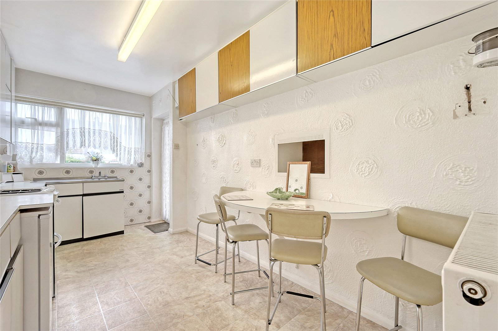 UPVC double obscured glazed door to side provides access to frontage. Two UPVC double glazed windows, one to front and one to side. Kitchen is fitted with a range of base and eye level cabinets incorporating a slim line square edged working surface, inset stainless steel with mixer tap and drainer unit. Space for free standing gas cooker. Space and plumbing for washing machine. Space for under counter fridge/freezer. Fitted breakfast table with wall mounted recess for microwave oven. Tiled splash backs. Tiled effect vinyl flooring. Wall mounted radiator. Smooth plastered ceilings. Wall mounted Worcester/Bosch gas fired boiler.