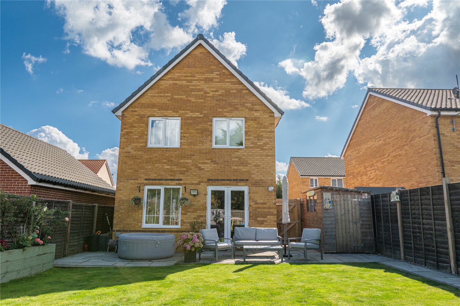 A beautifully presented, high specification three bedroom detached family home that boasts a superb detached garden lodge, a luxury fitted kitchen/breakfast room with quartz surfaces and integrated appliances, a ground floor cloakroom/WC and en-suite to principal bedroom. A must view!