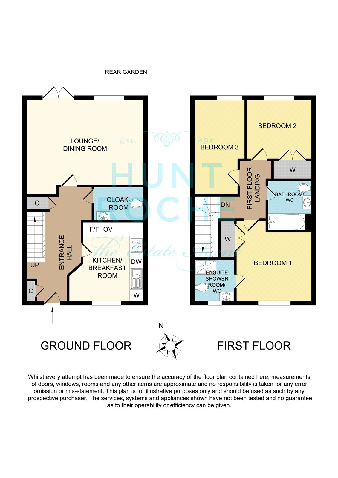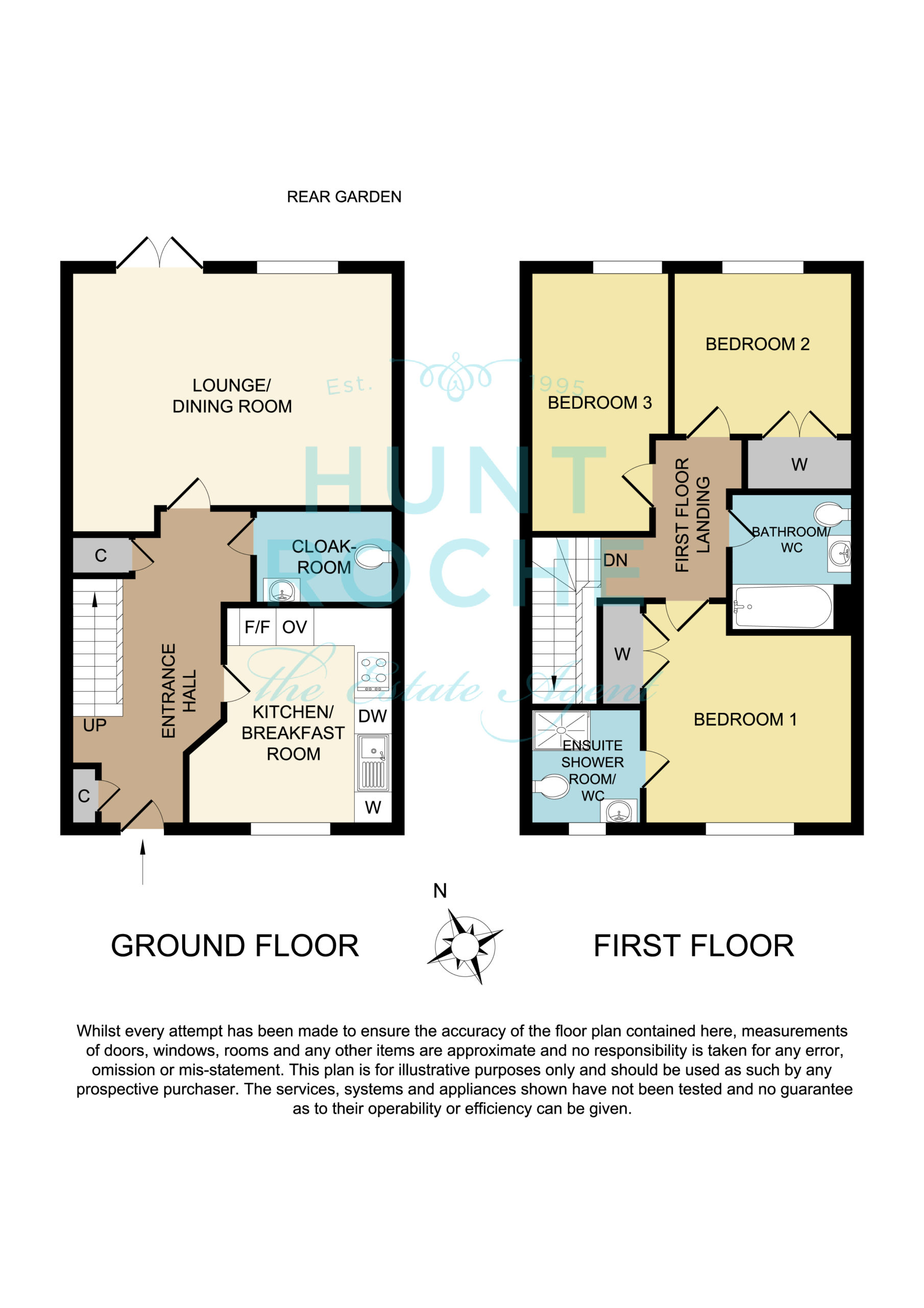 Opaque upvc double glazed window to the front aspect. Fitted with a modern white three piece suite comprising of low level w.c, pedestal wash basin with tiled splash back and mixer tap and tiled shower cubicle with wall mounted shower unit plus bi-folding shower screen. '' Amtico '' tiled effect flooring. Heated towel rail. Smooth plastered walls and ceiling. Extractor fan. Shaver point.