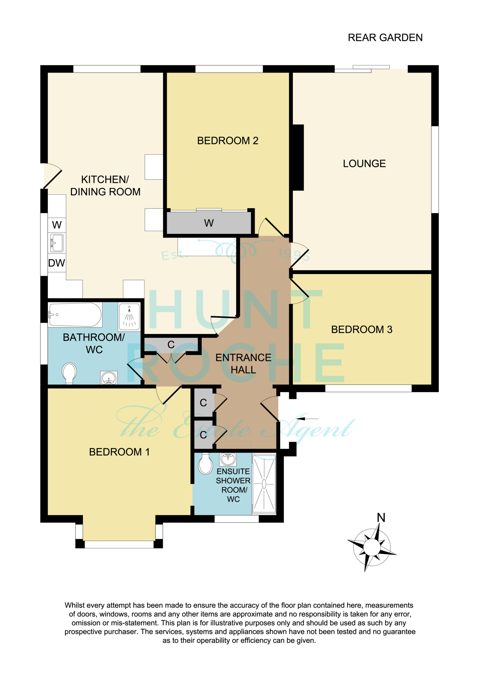 UPVC obscure double glazed window to front. Fitted with a modern and contemporary three piece suite comprising concealed flush W.C. Counter top mounted wash hand basin with mixer tap and storage cupboard beneath. Larger than average walk in shower with wall mounted mixer, rainfall shower head plus detachable shower head. Glass shower screen. Chrome heated towel rail. Fully tiled floors. Wood effect panelled walls. Smooth plastered ceiling with recessed LED lighting.