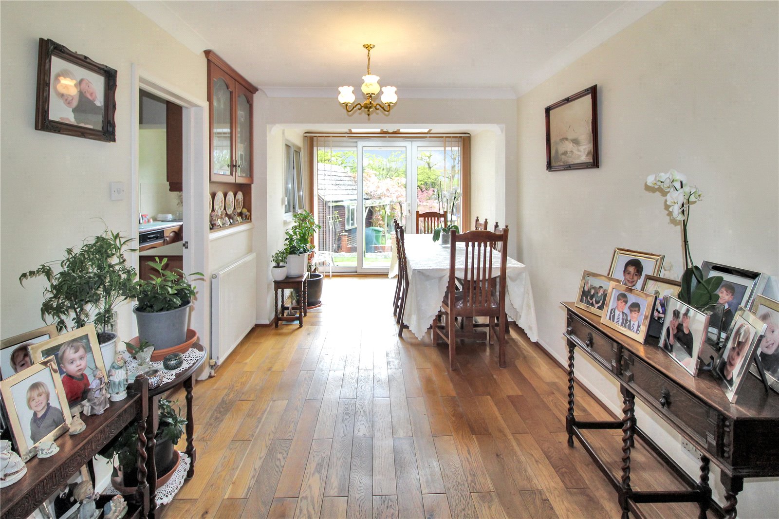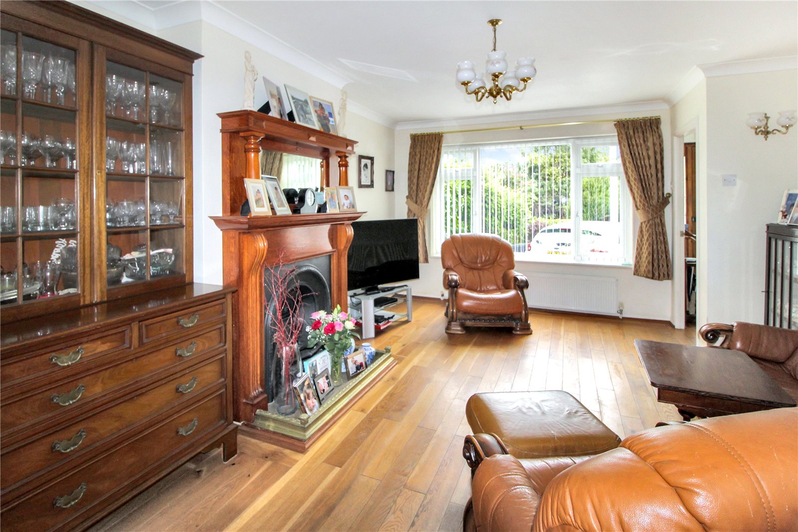 Bright and spacious, with double glazed window to front, wooden flooring, feature fireplace with gas point to side, 2 radiators, double glazed door and window to rear with views overlooking the fantastic rear garden.