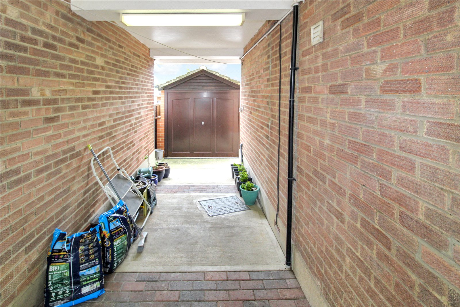 Detached with up and over door to front and door to side.