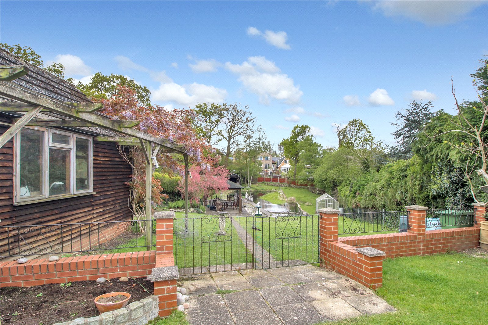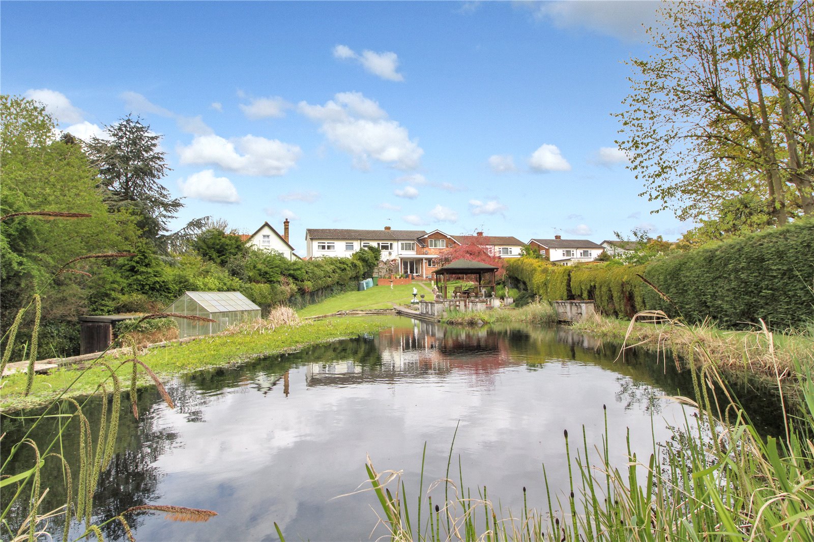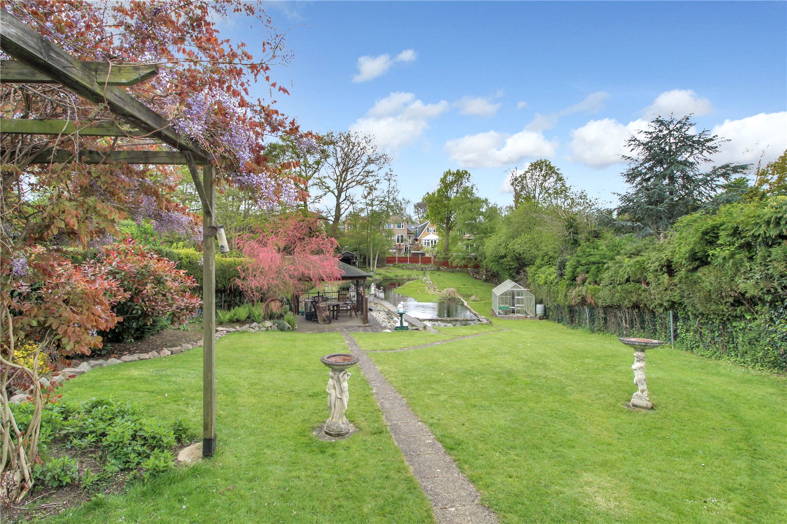 A beautiful tranquil 'park like' south facing rear garden measuring approx. 320' in length. Commencing with a patio area, with side access to car port and garage. Mostly laid to lawn with large pond. There is an additional outbuilding which would make a good office or workshop measuring 17'9" x 11'1", wrought iron gates at beginning of garden leading back through to front driveway.