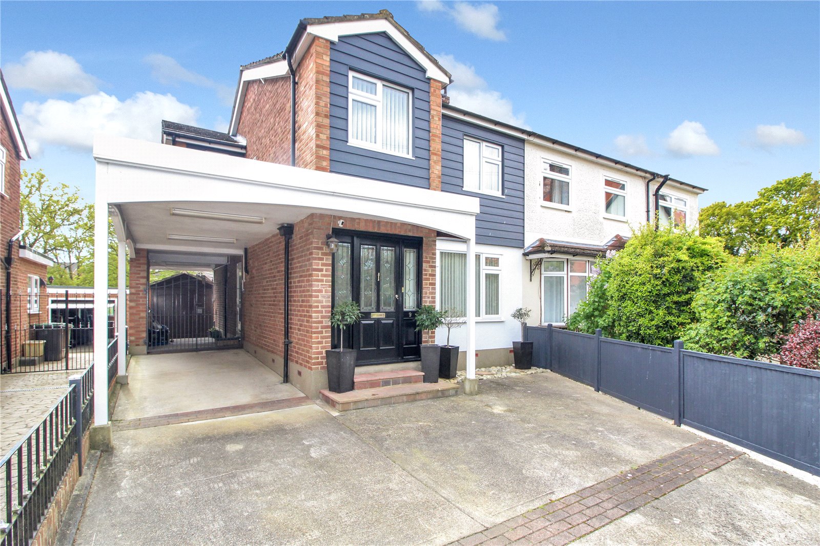 There is a large driveway to the front with gates leading to rear garden and garage.