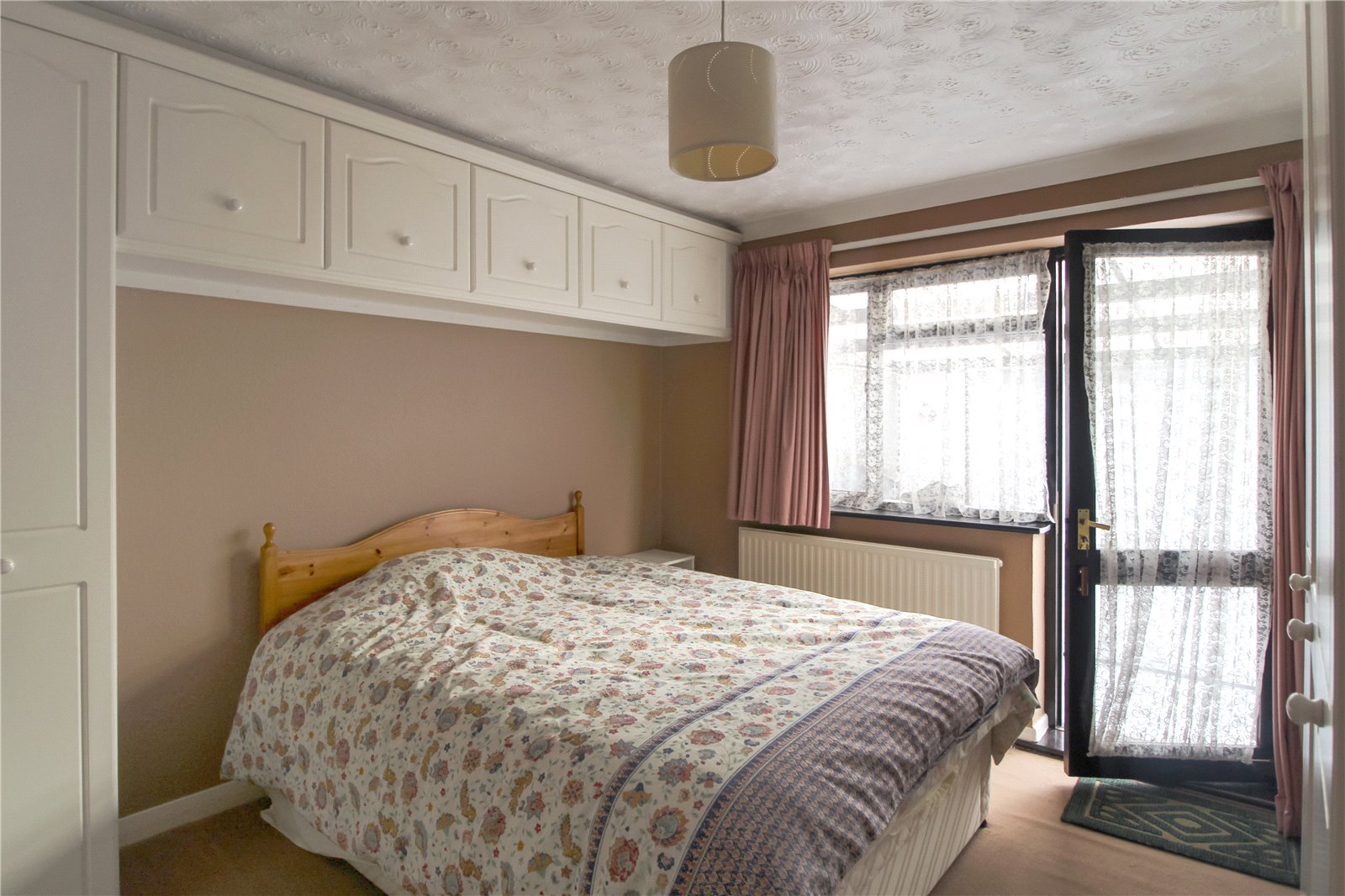 Double room with a range of fitted wardrobes, carpet to floor, ceiling light, double glazed window and double glazed door to rear.