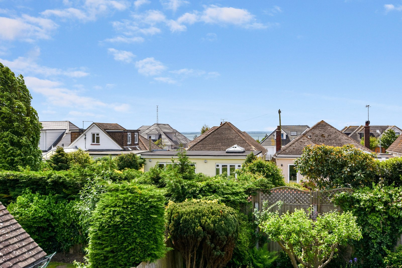 To the first floor, a spacious galleried landing provides access to eaves storage and loft space via a pull-down ladder. All four bedrooms are comfortable doubles, with the principal bedroom benefiting from quality fitted wardrobes and a modern en-suite shower room. The rear bedrooms feature large skylight-style windows offering attractive rooftop views towards the Thames Estuary. A contemporary family bathroom completes the accommodation.