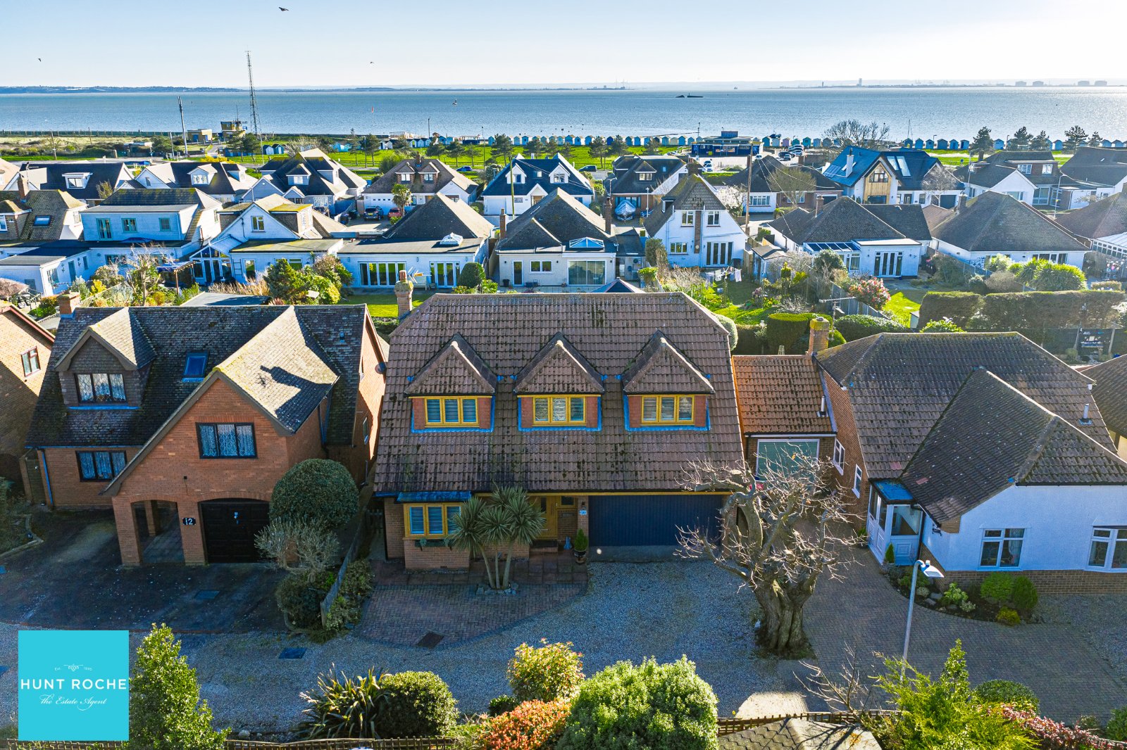 Occupying a prime position within the ever-popular South Shoebury area, this impressive residence enjoys a desirable south-backing plot and is discreetly approached via a private driveway serving just two homes. The property has been extensively and thoughtfully upgraded throughout, with the rear bedrooms benefiting from distant glimpses towards the Thames Estuary.