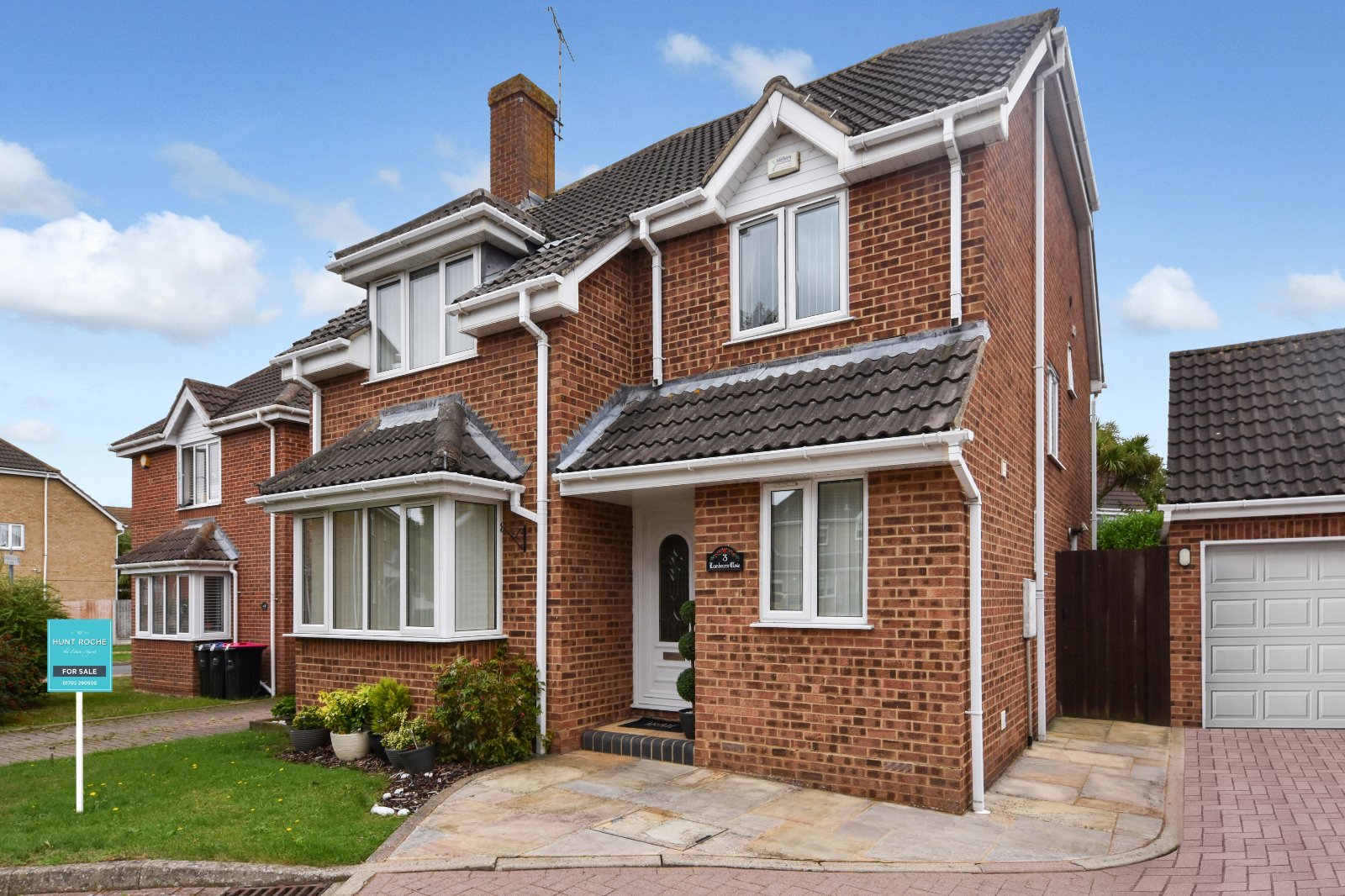 Accessed from the cul-de-sac, the property is approached via an attractive frontage with a block-paved driveway providing ample off-road parking and access to the garden. Well-stocked shrub borders frame a neatly maintained lawned area, enhancing the kerb appeal and character of the home.