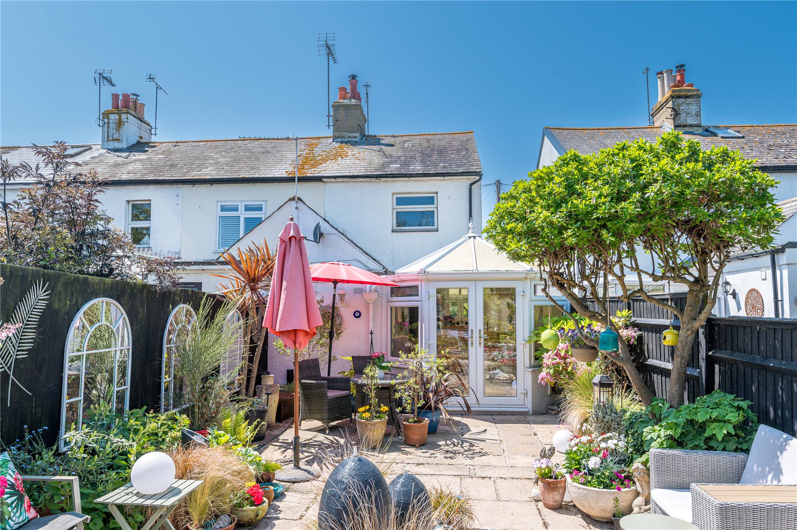 A beautifully appointed, extended semi-rural cottage, in a private lane location offering three reception rooms, a showstopping landscaped garden with garden lodge, panoramic farmland views and superb interior design features