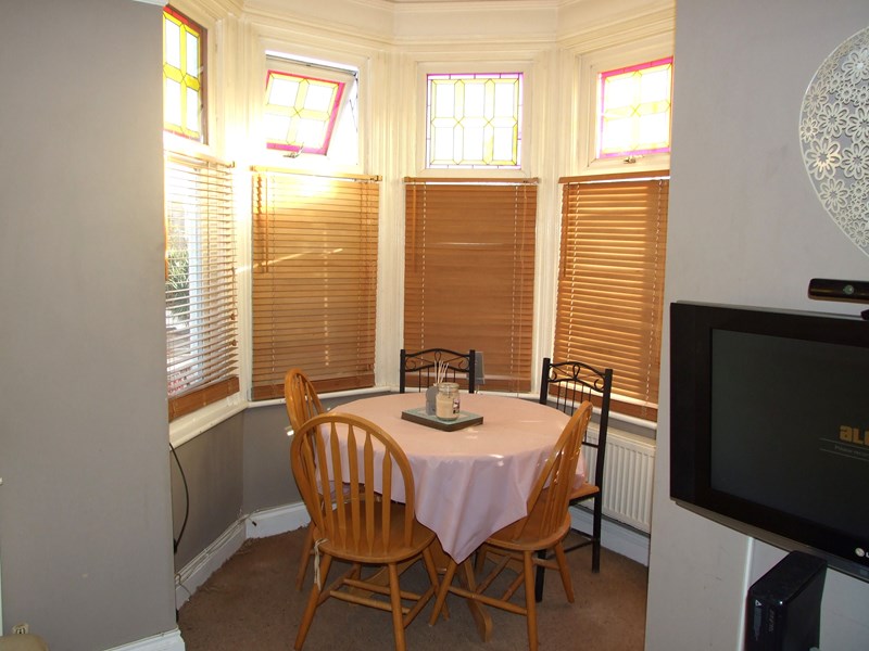 Lounge/dining room 20'6 (6.25m) max x 15'4 (4.67m) into bay Feature uPVC double glazed circular corner bay window and further uPVC double glazed square bay window with box seat beneath. Double banked radiators, television aerial point, picture rail, ornate coving to smooth plaster ceiling, high level skirting.