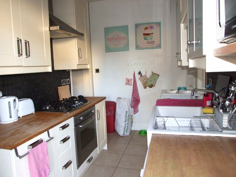 Kitchen 11'6 x 6'9 (3.51m x 2.06m) uPVC double glazed door opens onto rear garden. The kitchen has been fitted with a modern range of base and eye level cabinets with wooden working surfaces with double enamel butler style sink with mixer taps over, splash back tiling to working surface areas. The range of integrated appliances include electric oven and split level gas four ring hob with brushed steel extractor canopy above, plumbing and drainage for automatic washing machine, further appliance space. Concealed under unit lighting, tiled flooring, high level skirting, smooth plaster ceiling with recessed down lights, door through to: