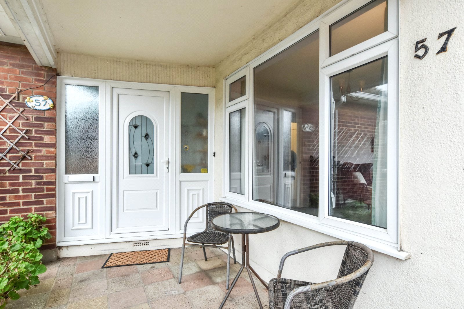 Large canopied entrance porch / seating area providing access to uPVC entrance door inset with arched obscure double glazed inset with obscure uPVC double glazed windows to either side.