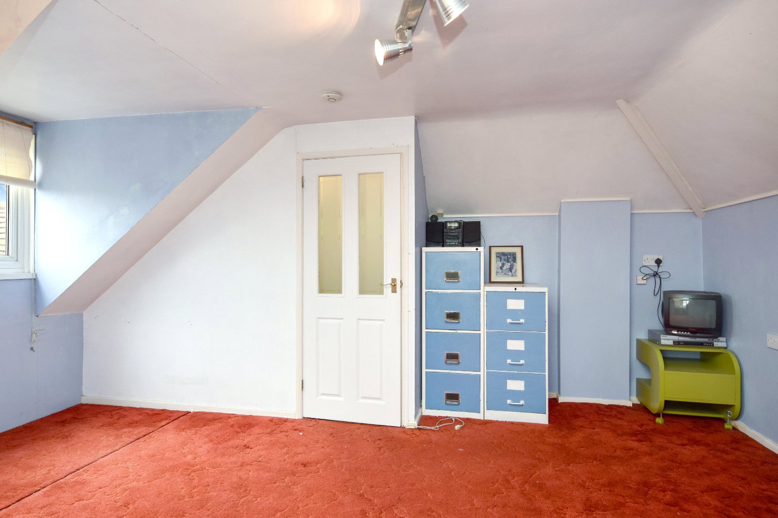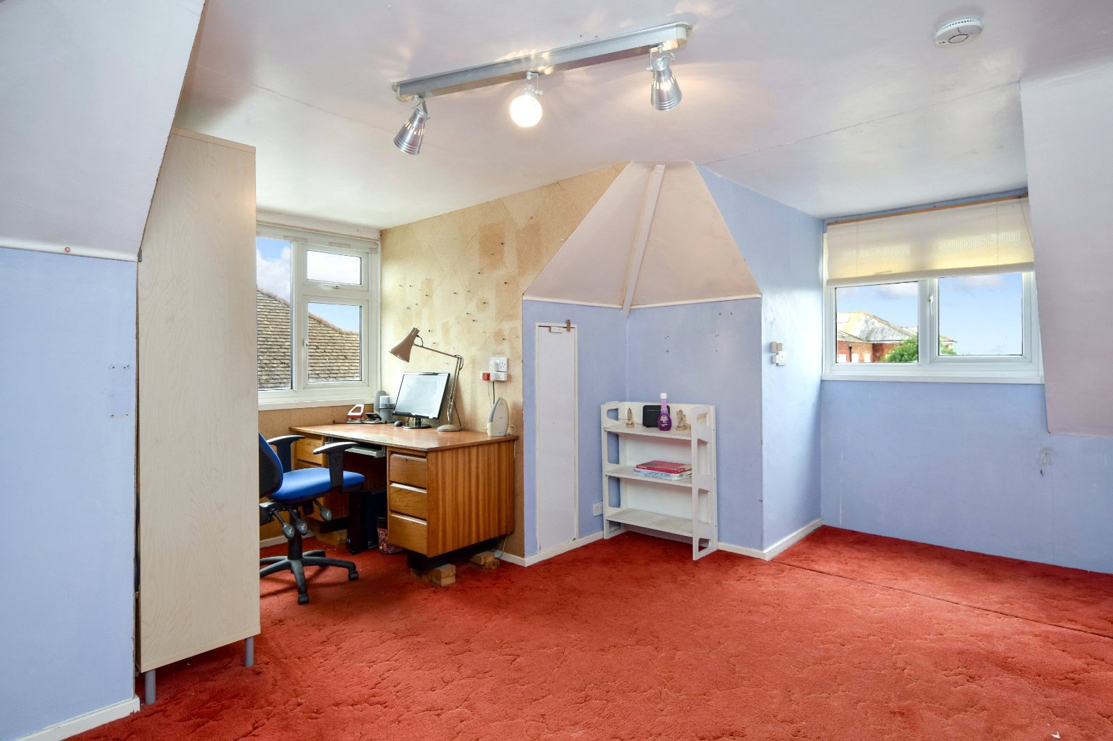 uPVC double glazed dormer style window to front aspect with distance partial sea glimpses. Further double glazed window to side offering partial sea glimpses. Radiator. Door to eaves storage. Shaped ceiling- with some restricted head height.