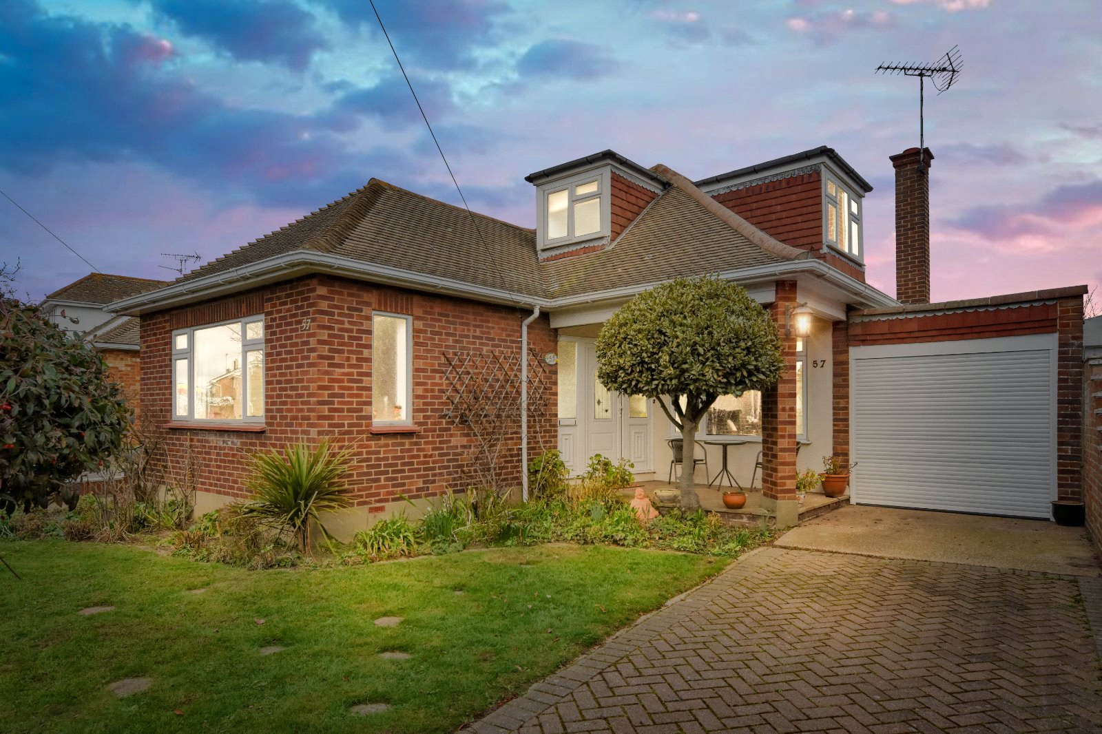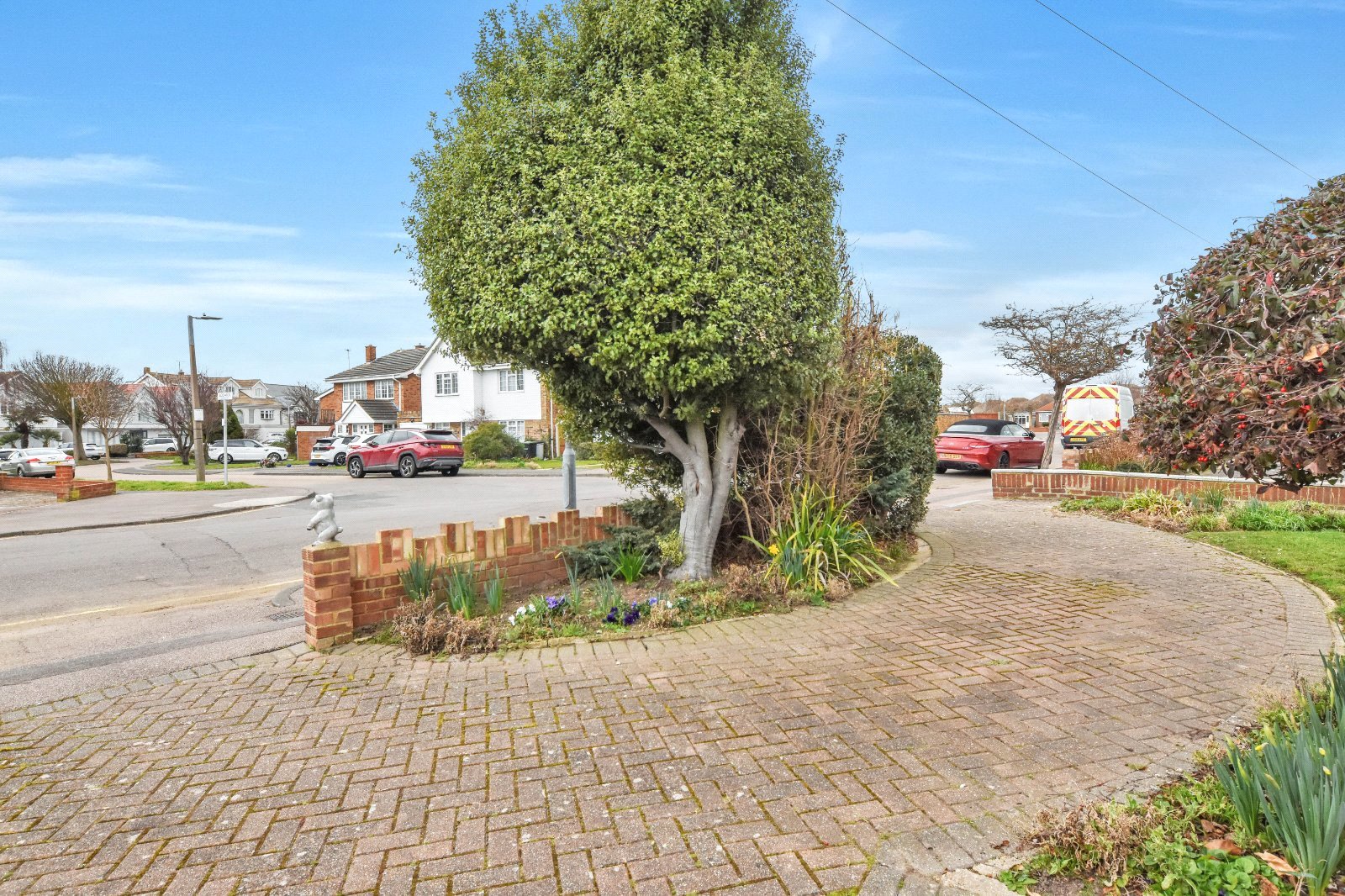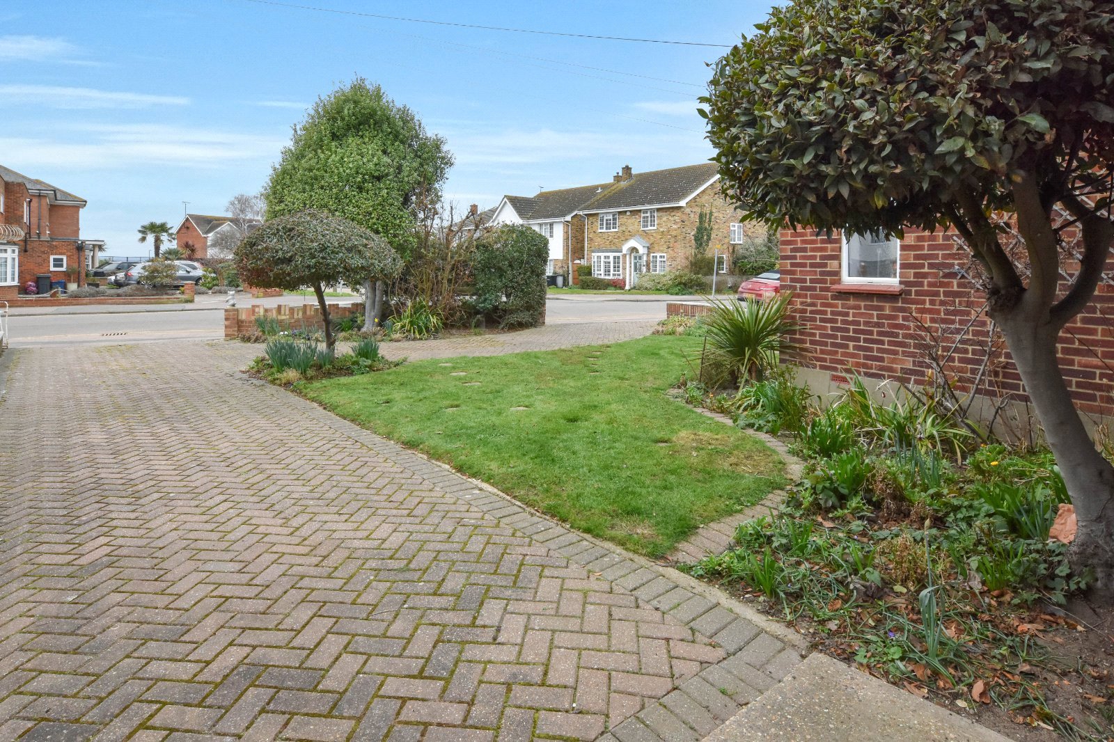 The property is set back from the road which offers a good size frontage (measuring approx. 48ft (max)). There is a block paved driveway providing direct access to the Garage. Further curved block paved 'in & out' driveway area. Curved flower bed to the front boundary wall. Further lawned area with established trees and shrubs. Gated access to sideway access.
