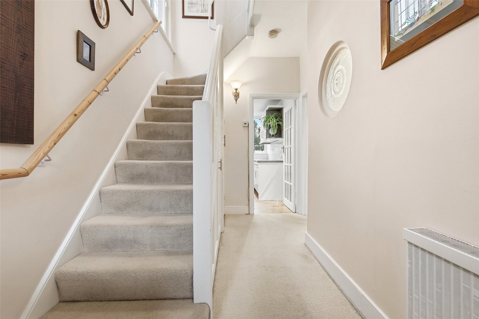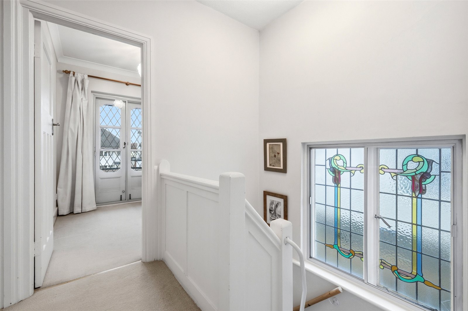 Original feature stained glass leaded light window to side with secondary glazing. Doors lead off to all rooms. Access to loft space. High level skirting.