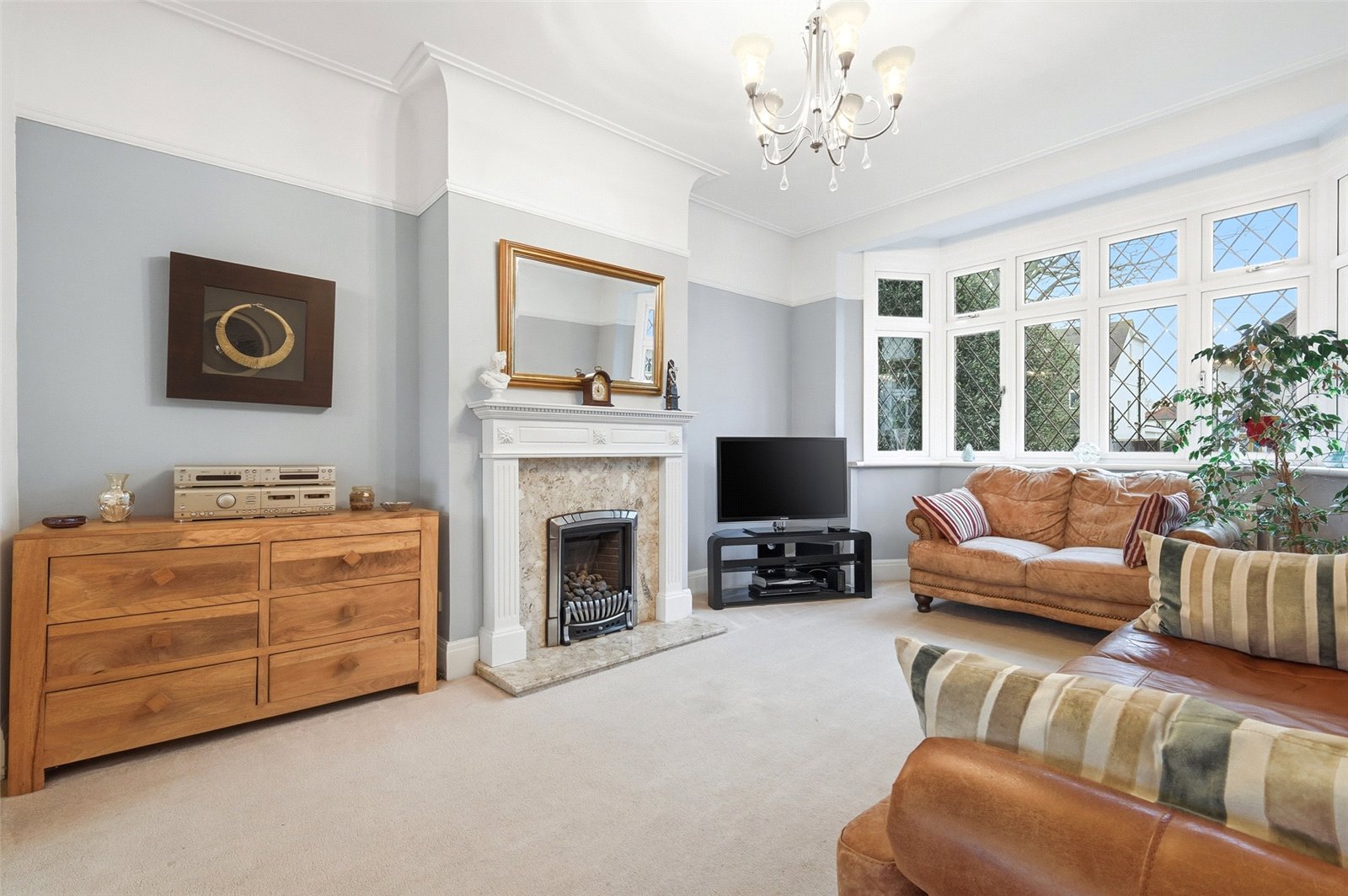 Large UPVC double glazed leaded light bay window unit to front. Sliding patio door to rear leading to rear garden. Two wall mounted radiators. Feature fireplace with wooden mantle, stone hearth and insert and inset gas fire. High level skirting. Feature picture rail. Coved cornice to smooth plastered ceiling. Obscured glazed feature borrowed light panel to side.