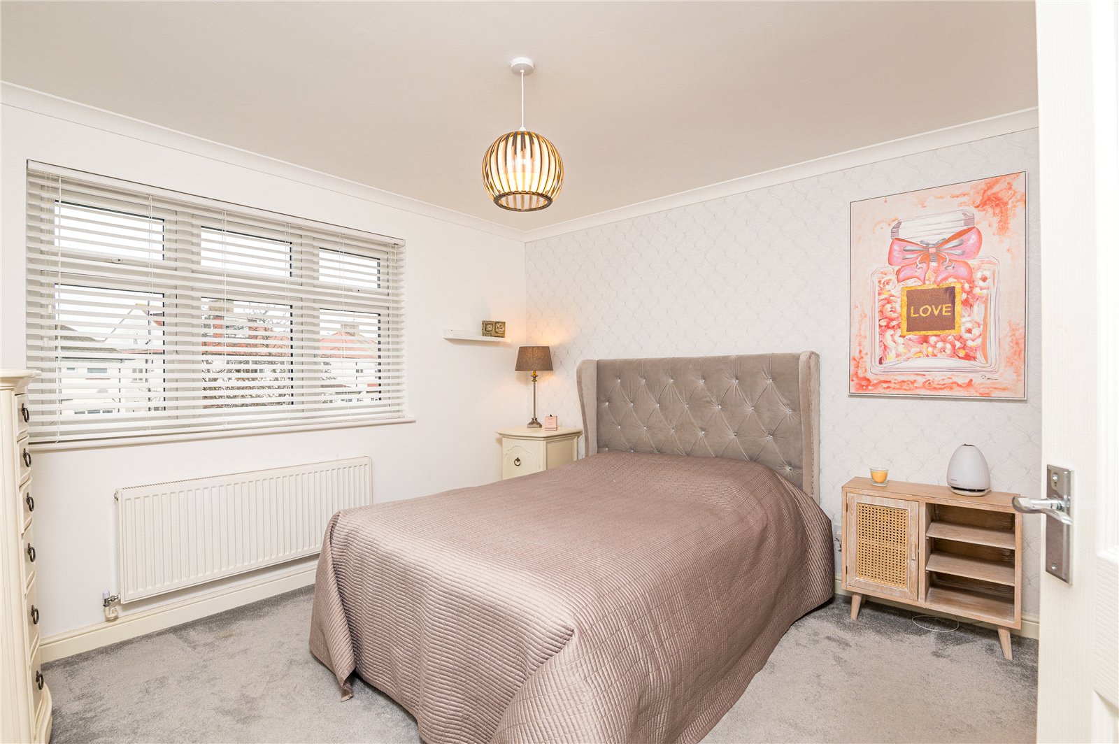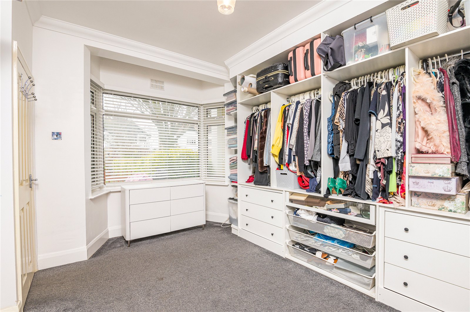 Double glazed bay window to front. Radiator. Coved ceiling. Extensive range of built in wardrobes and storage solutions.